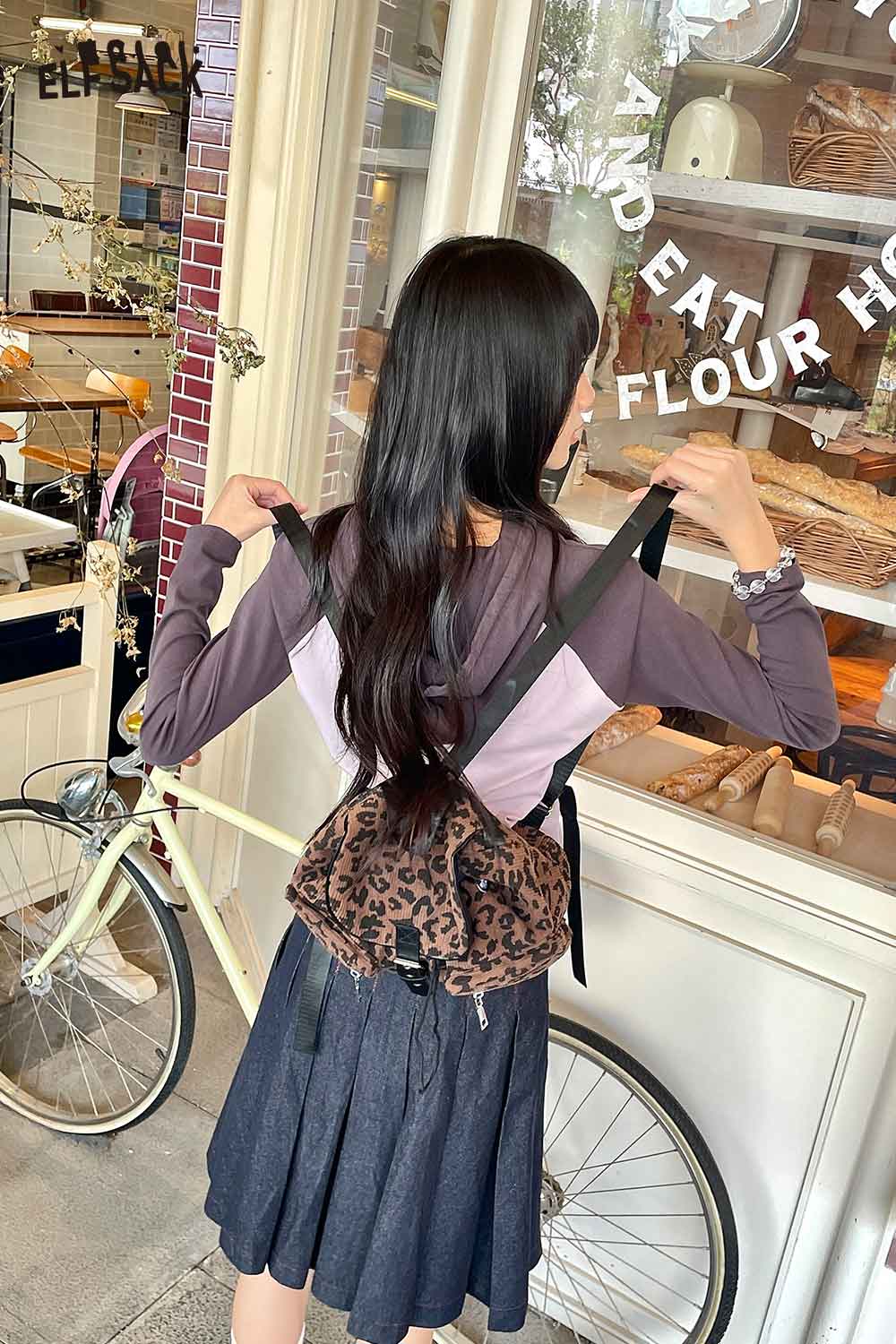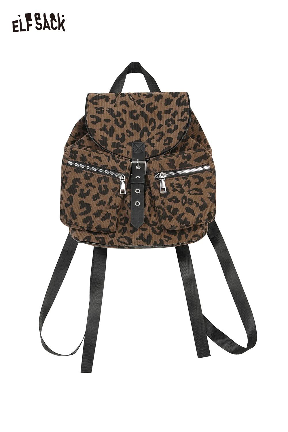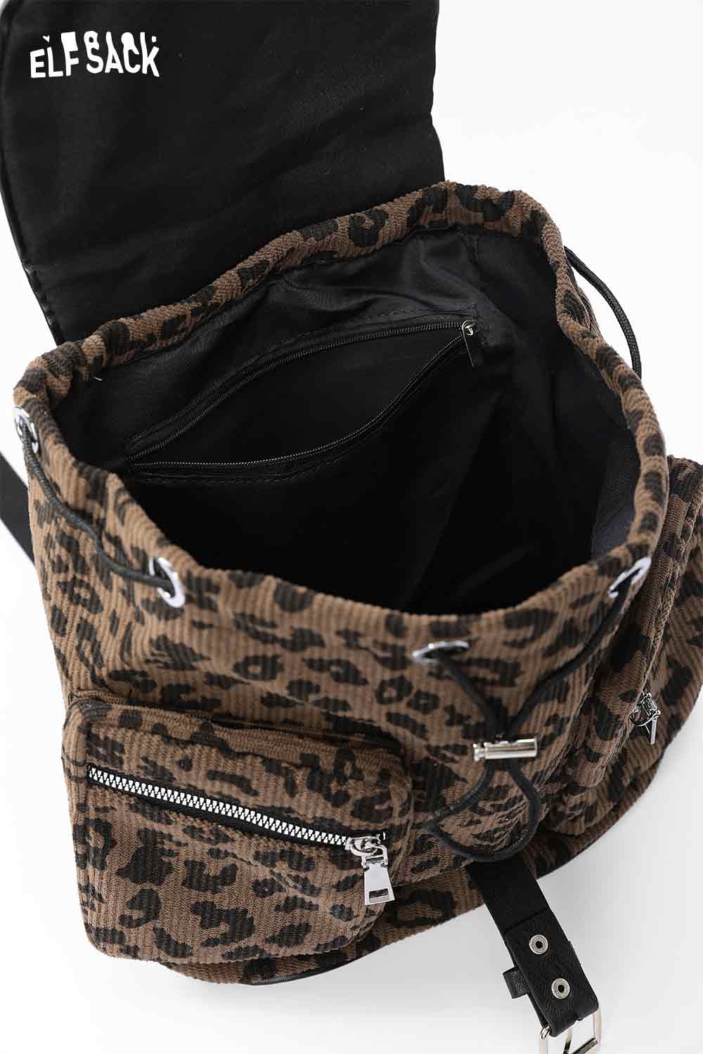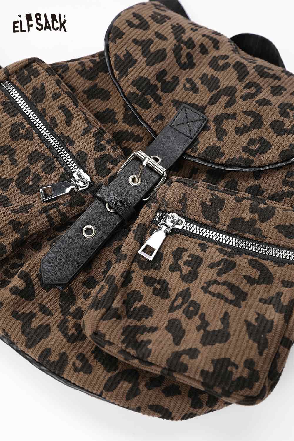 Wool Blend Leopard Pattern Tweed Fabric Flap Closure Rucksack