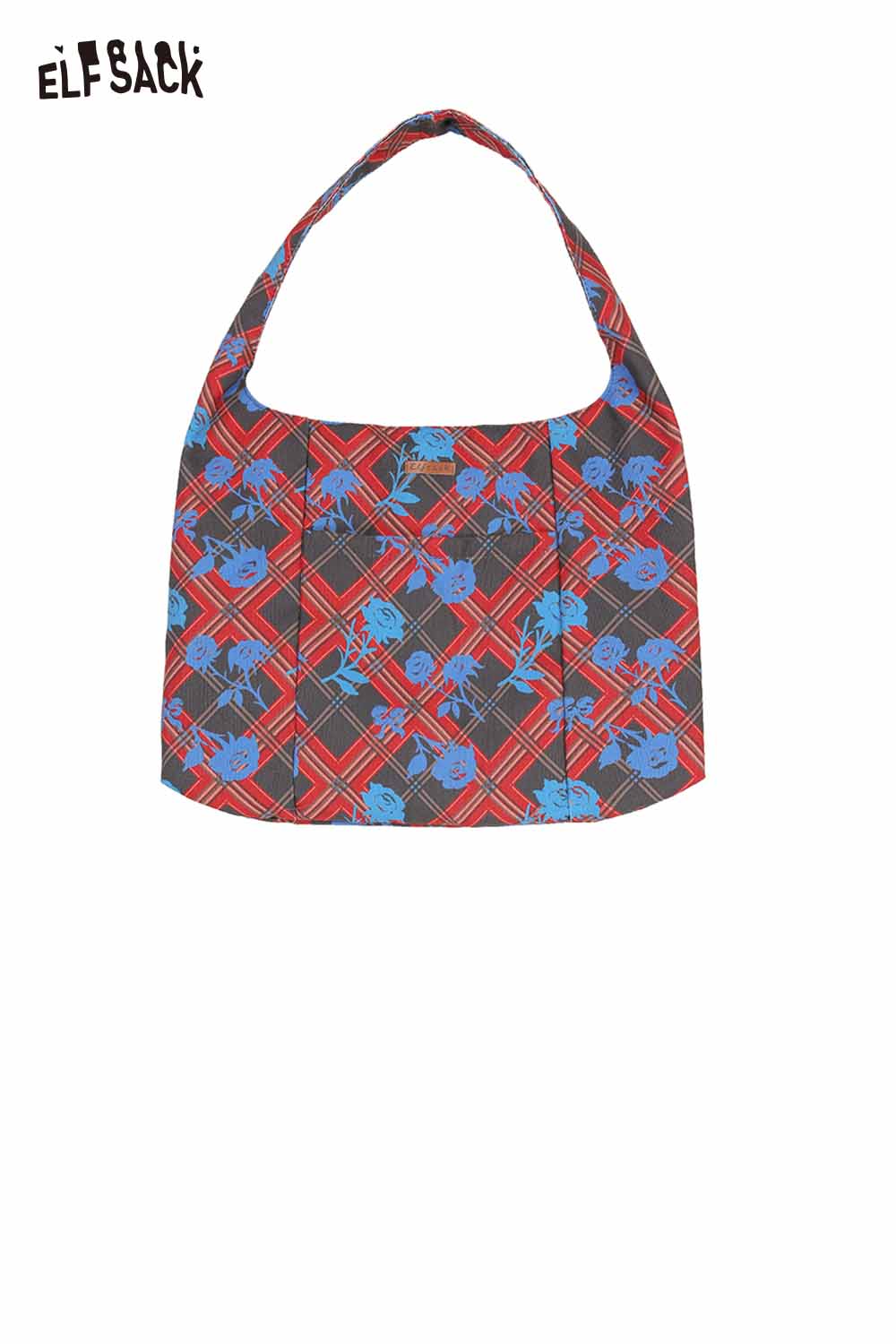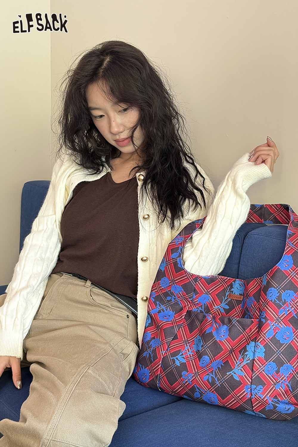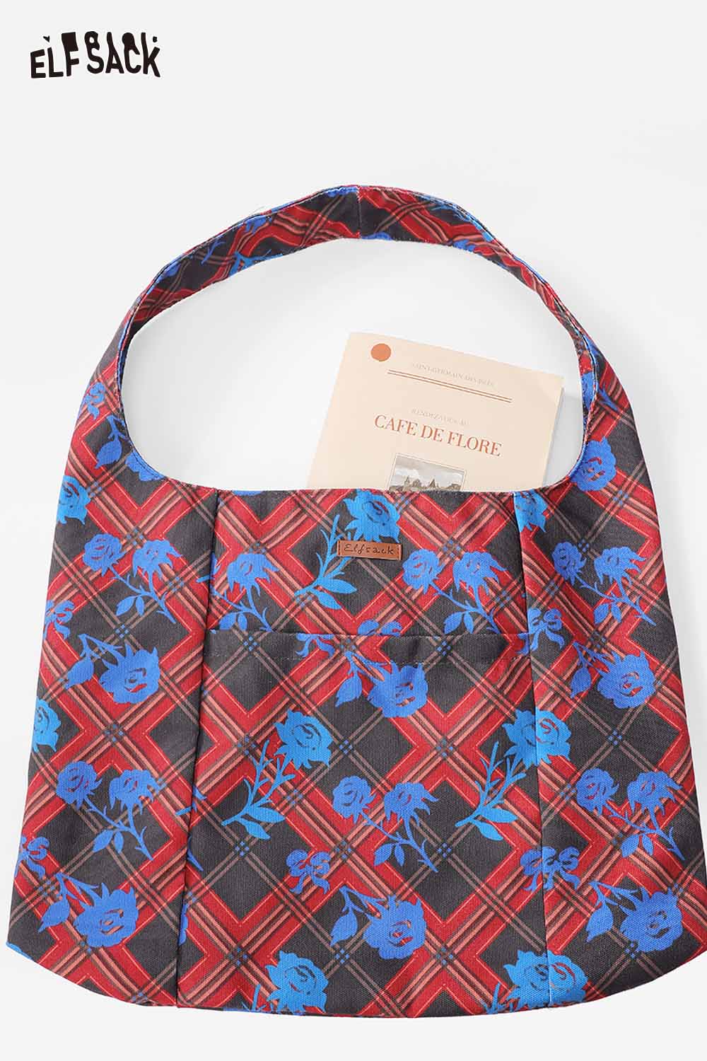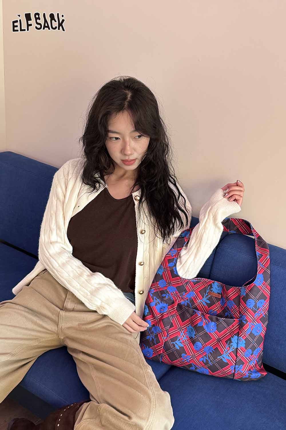 Canvas Color Block Plaid Cartoon Rabbit Print Tote Bag