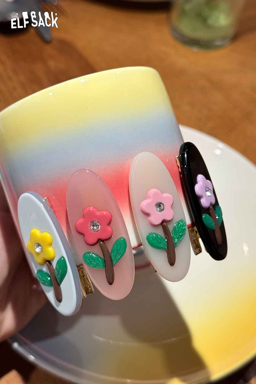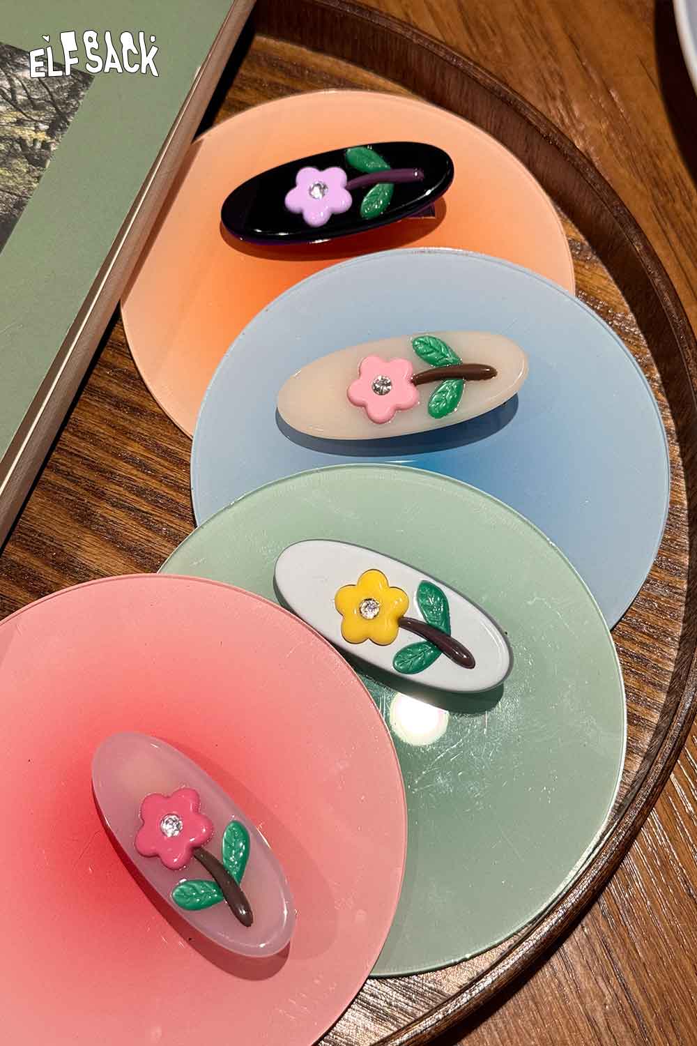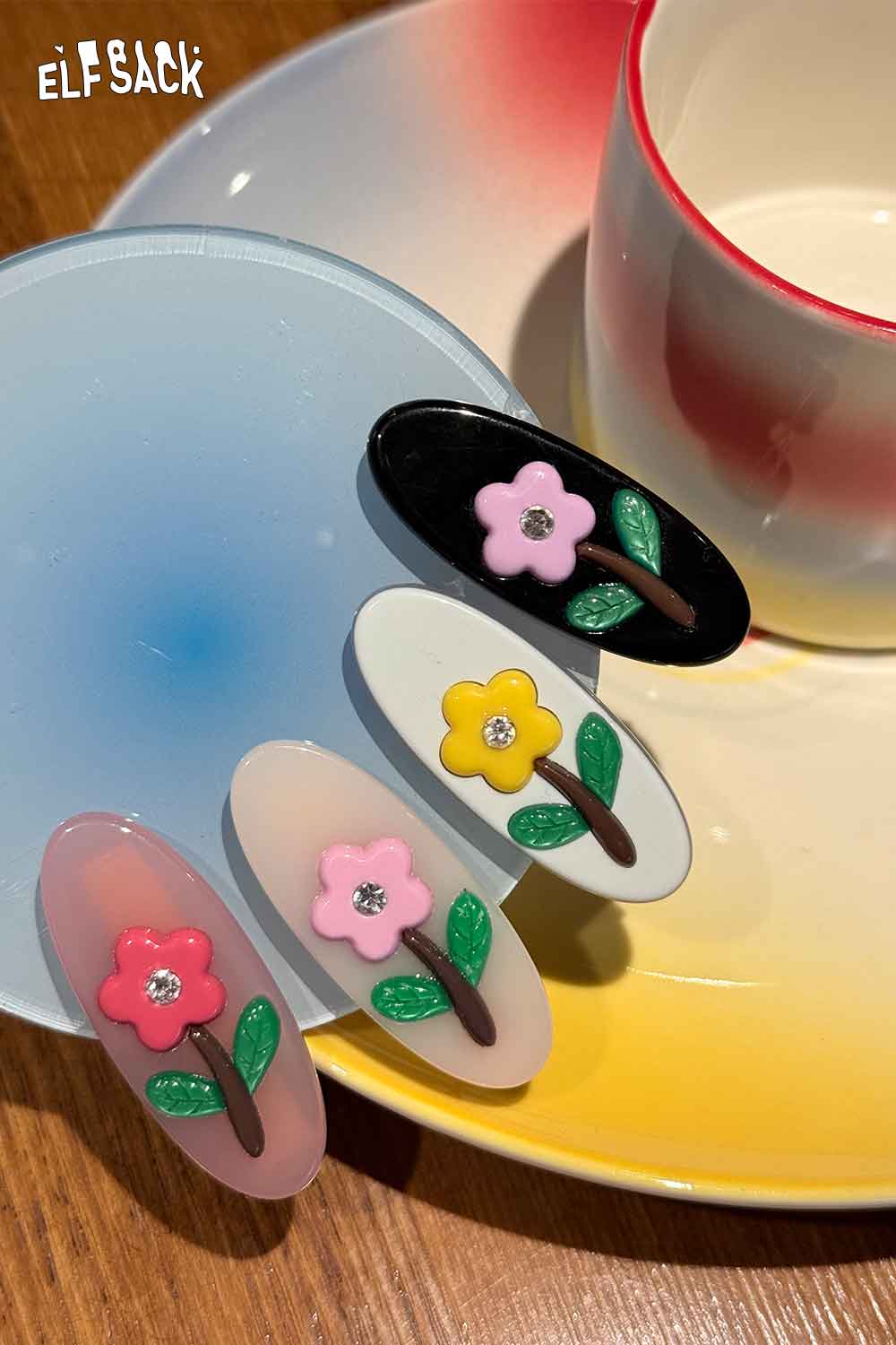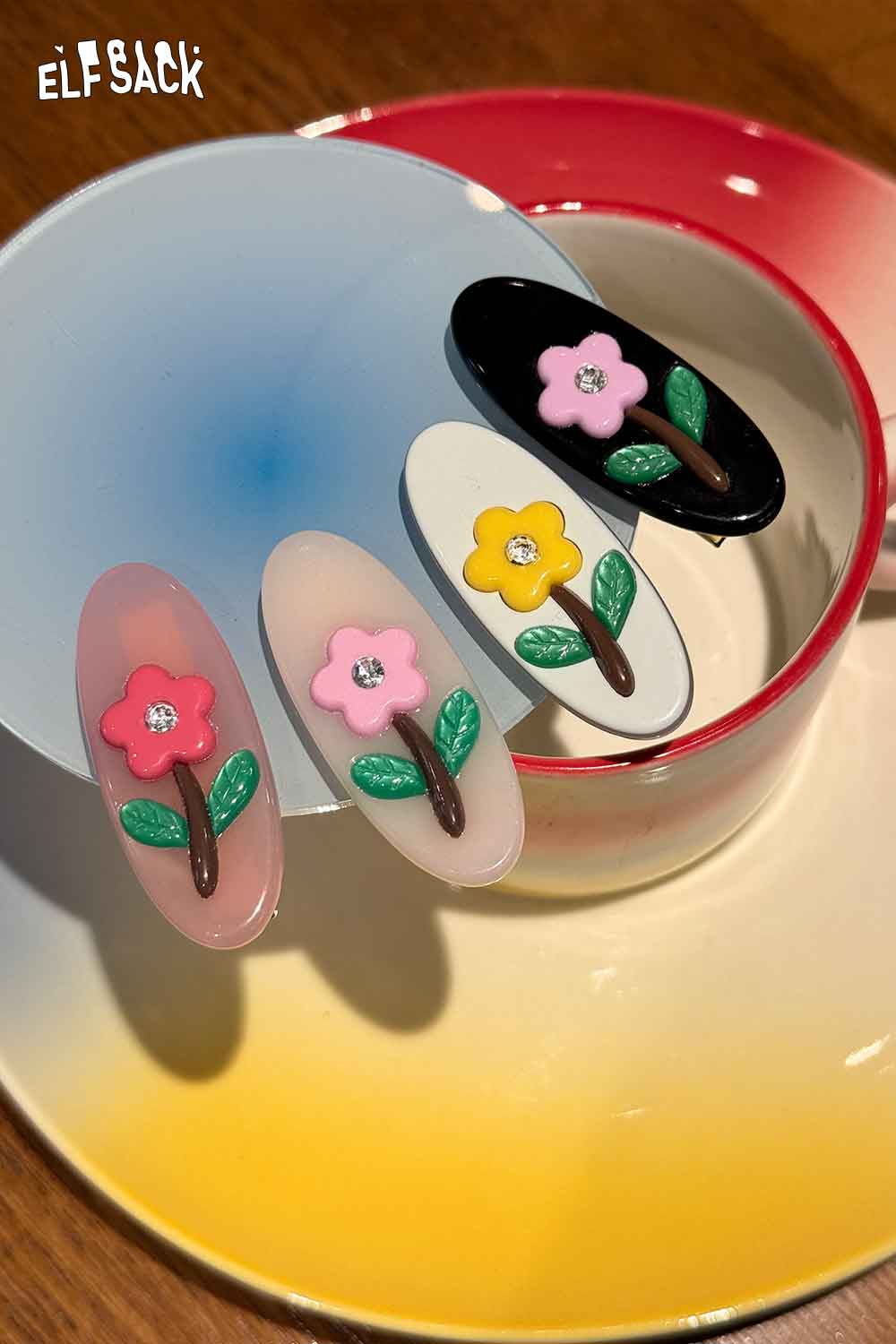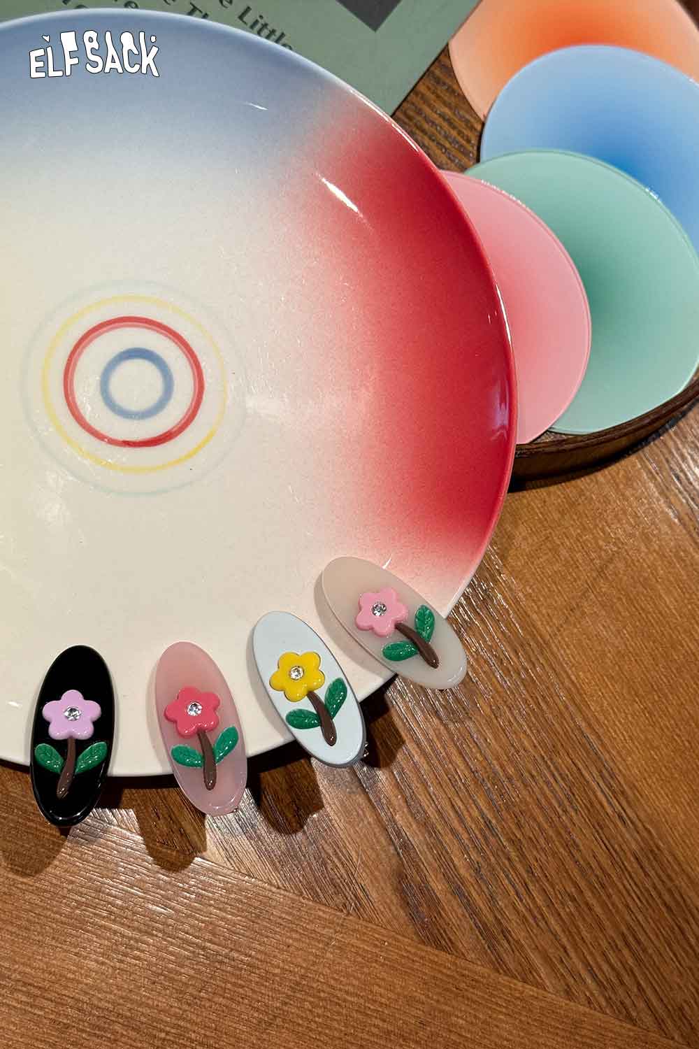 Jelly Color Rhinestone Flower Hair Clip Cute Versatile Design Bangs