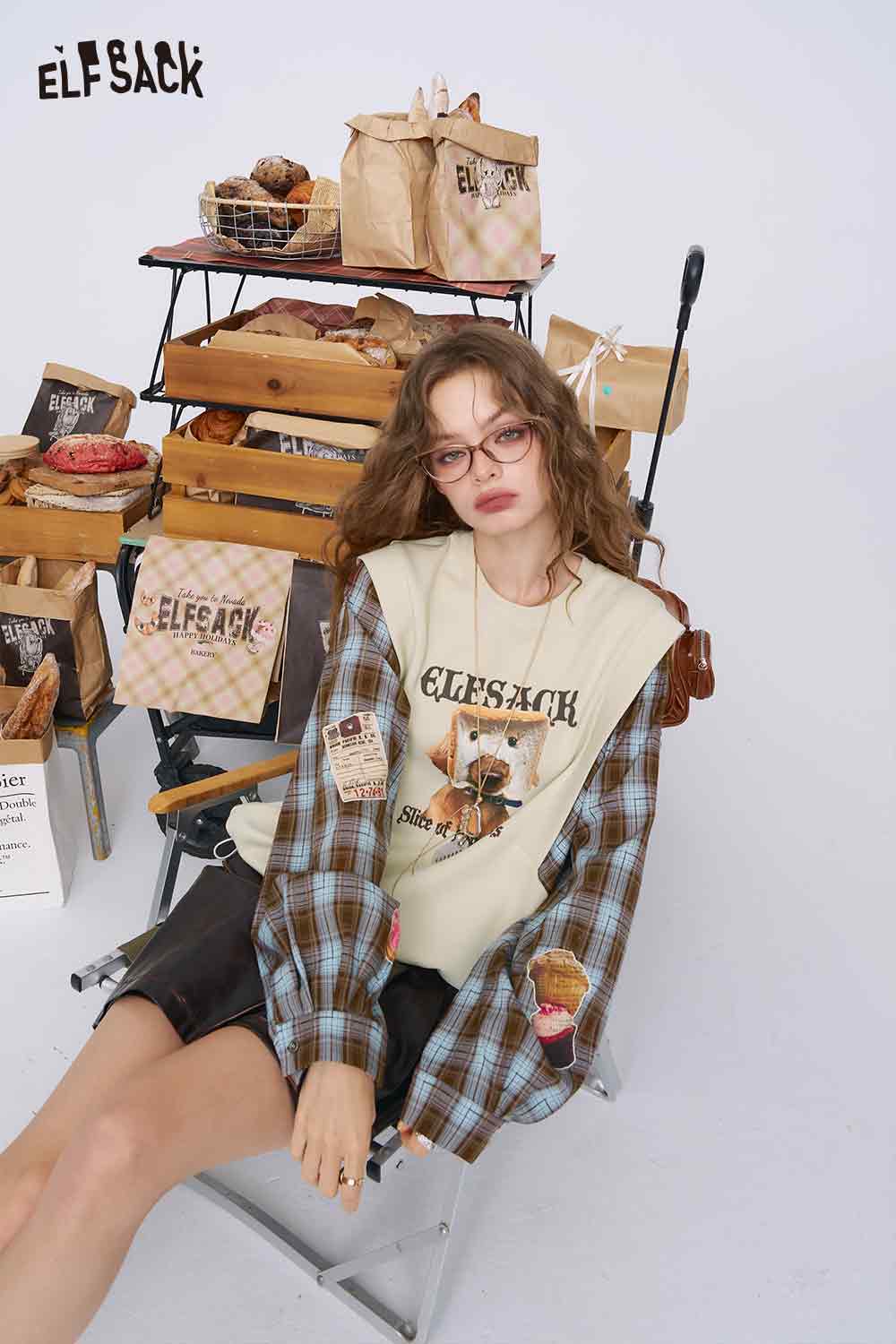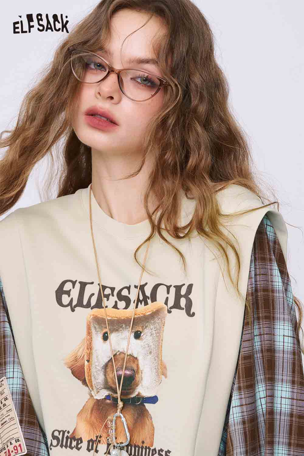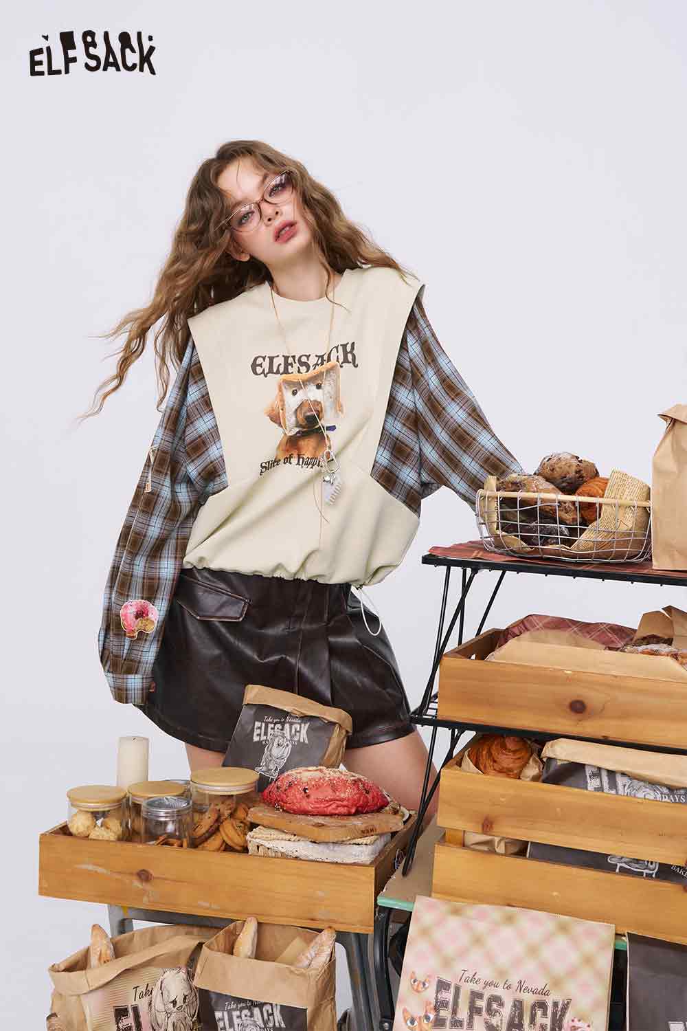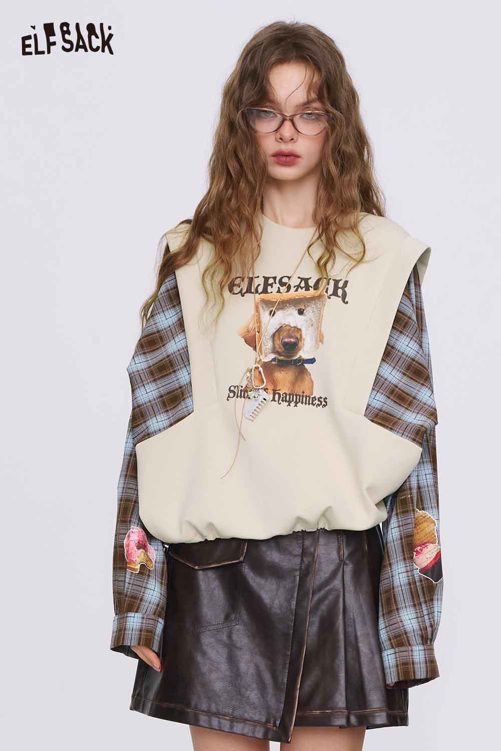 "Bread Dog" Print Loose-Fit Crewneck Sweatshirt