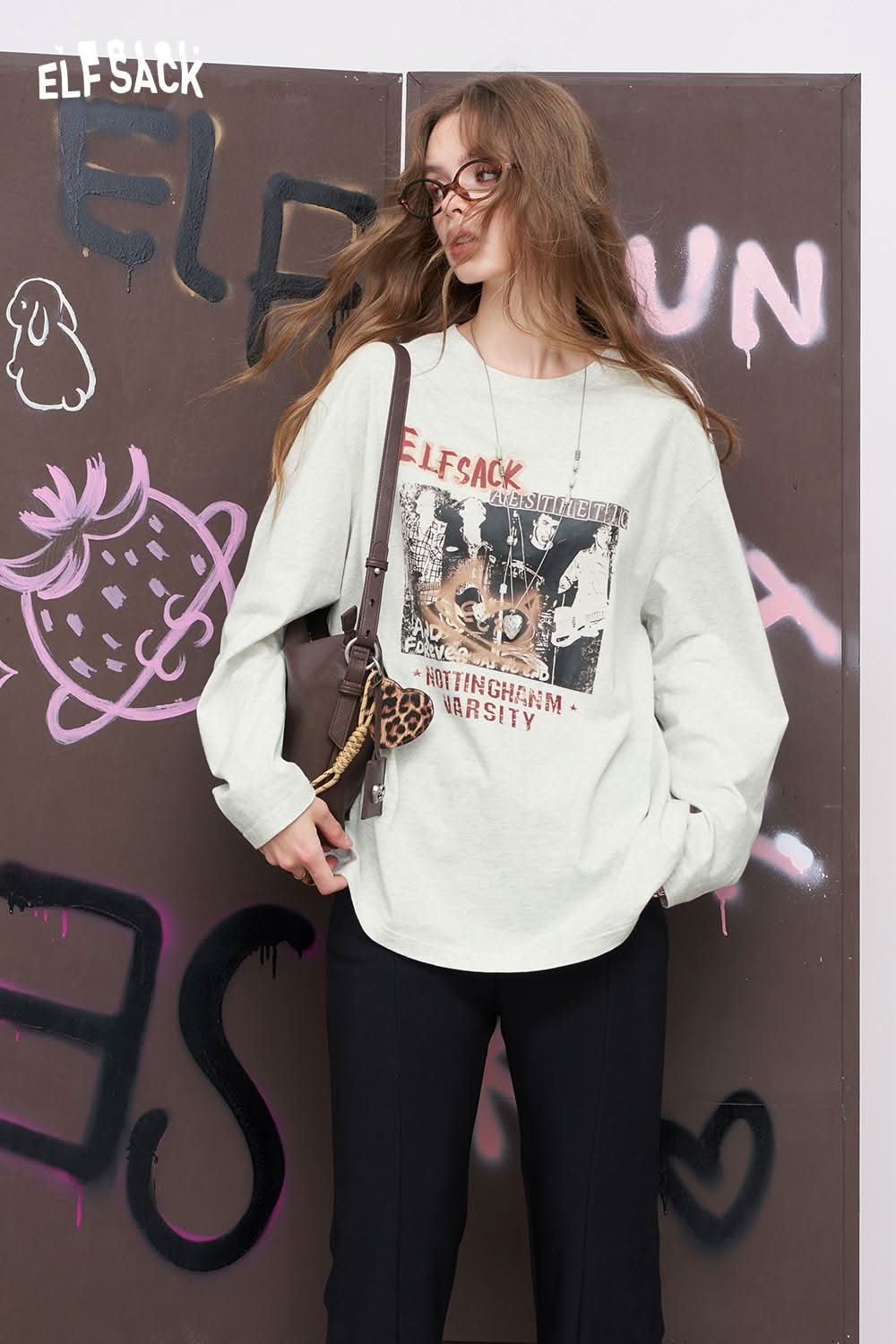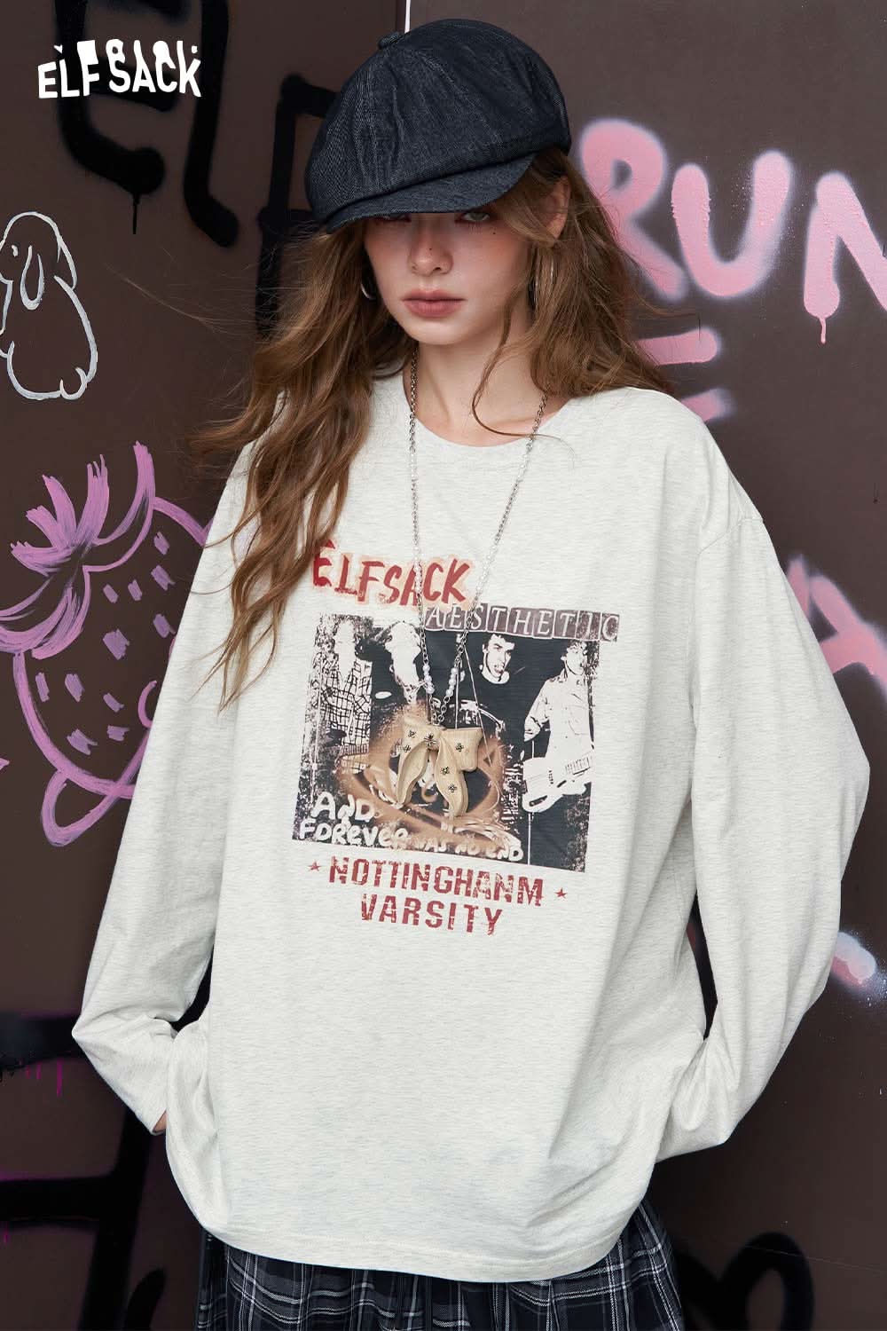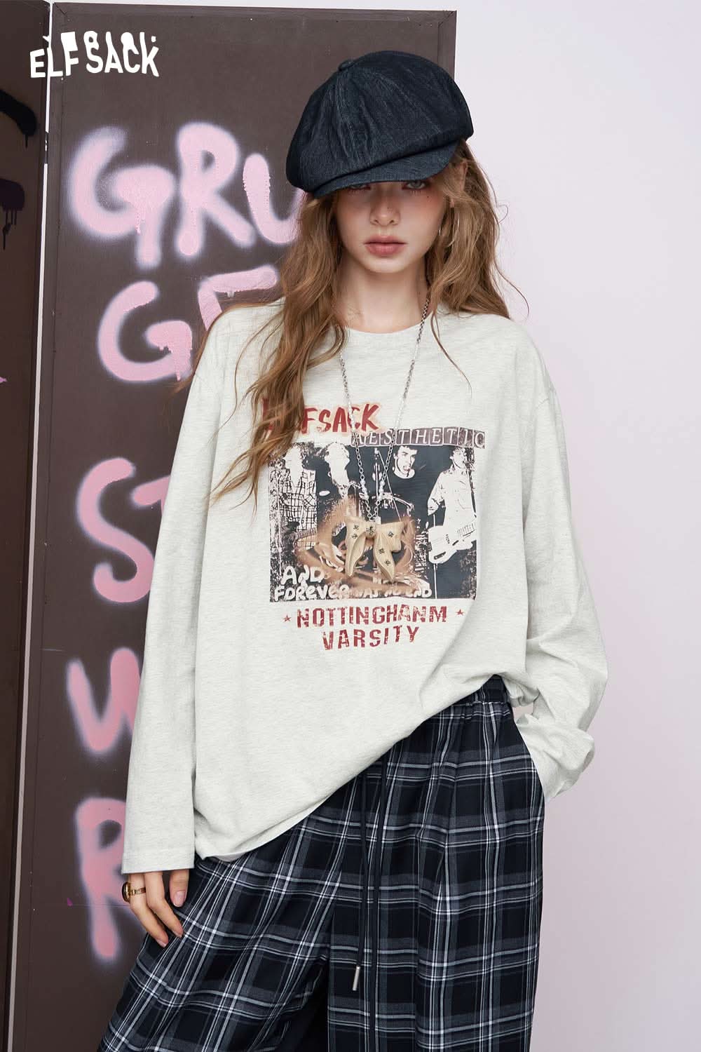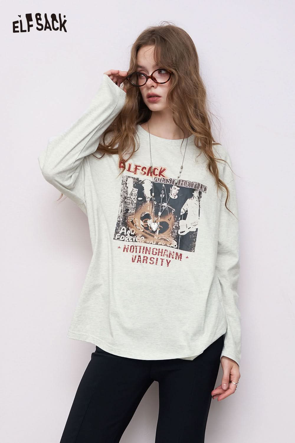 Distressed Oversized Cotton Monochrome Rock Graphic Raw Hem Tee
