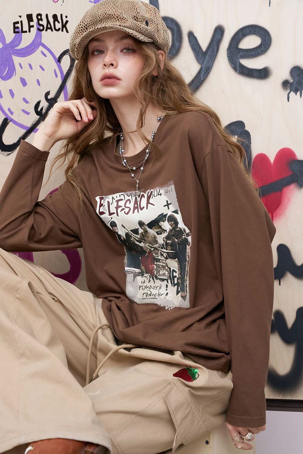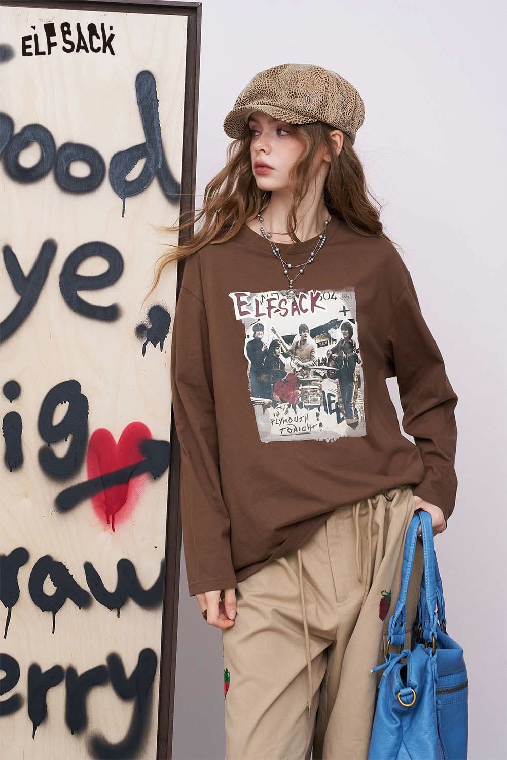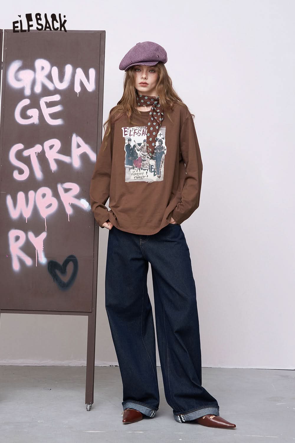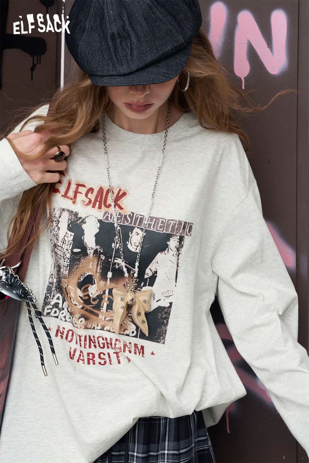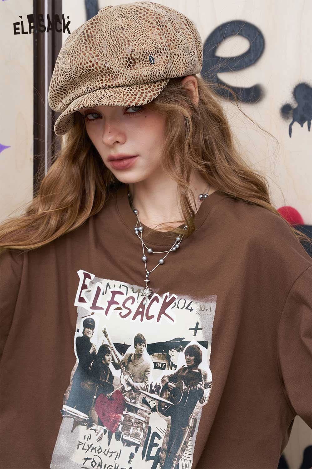 Distressed Oversized Cotton Monochrome Rock Graphic Raw Hem Tee