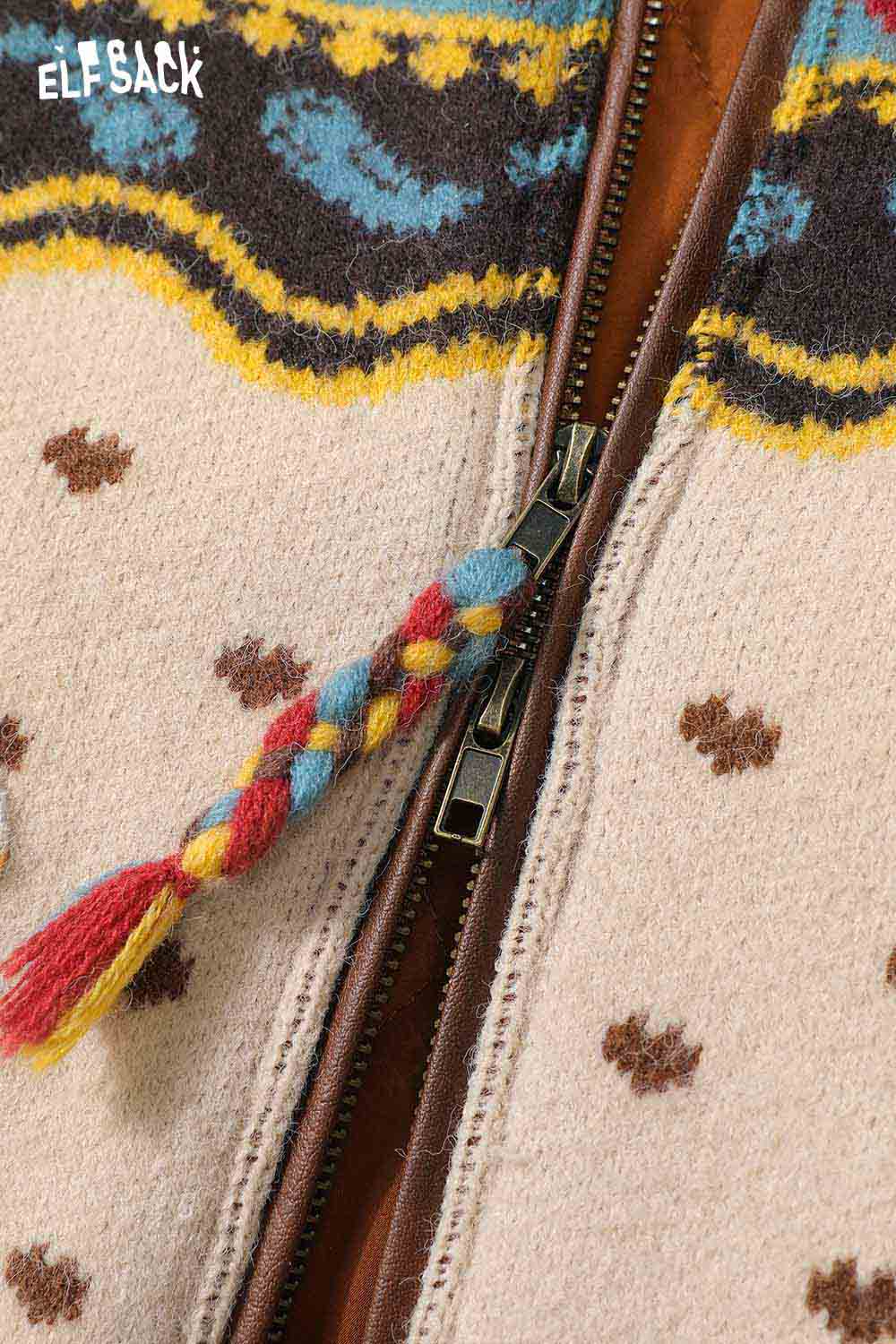 ELFSACK 3D dog graphic lapel coat in brown with colorful patterns and cozy design for stylish winter fashion
