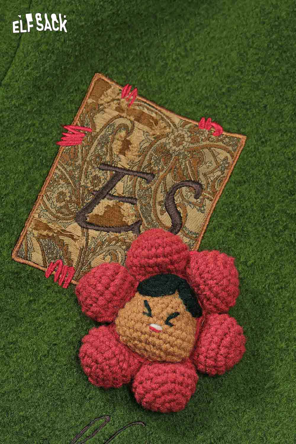 3D Embellishment Square Embroidery Solid Hooded Coat