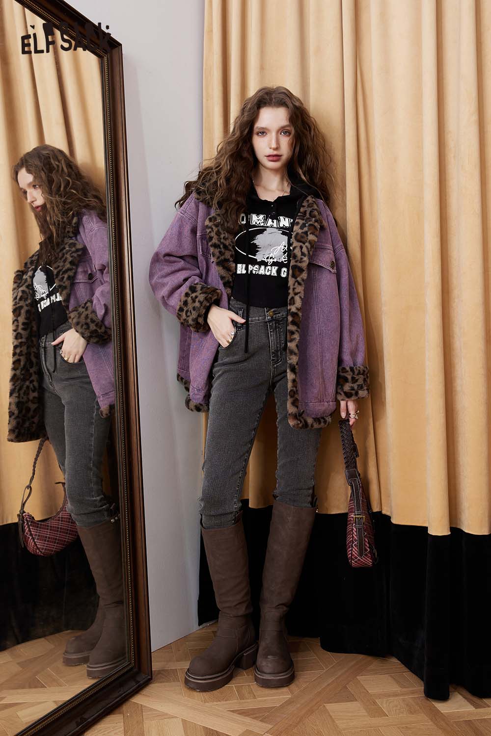 Leopard Print Denim Loose Cotton Coat