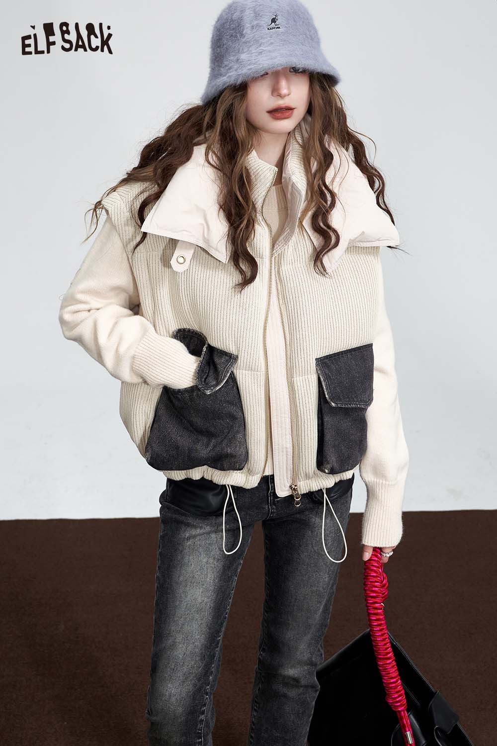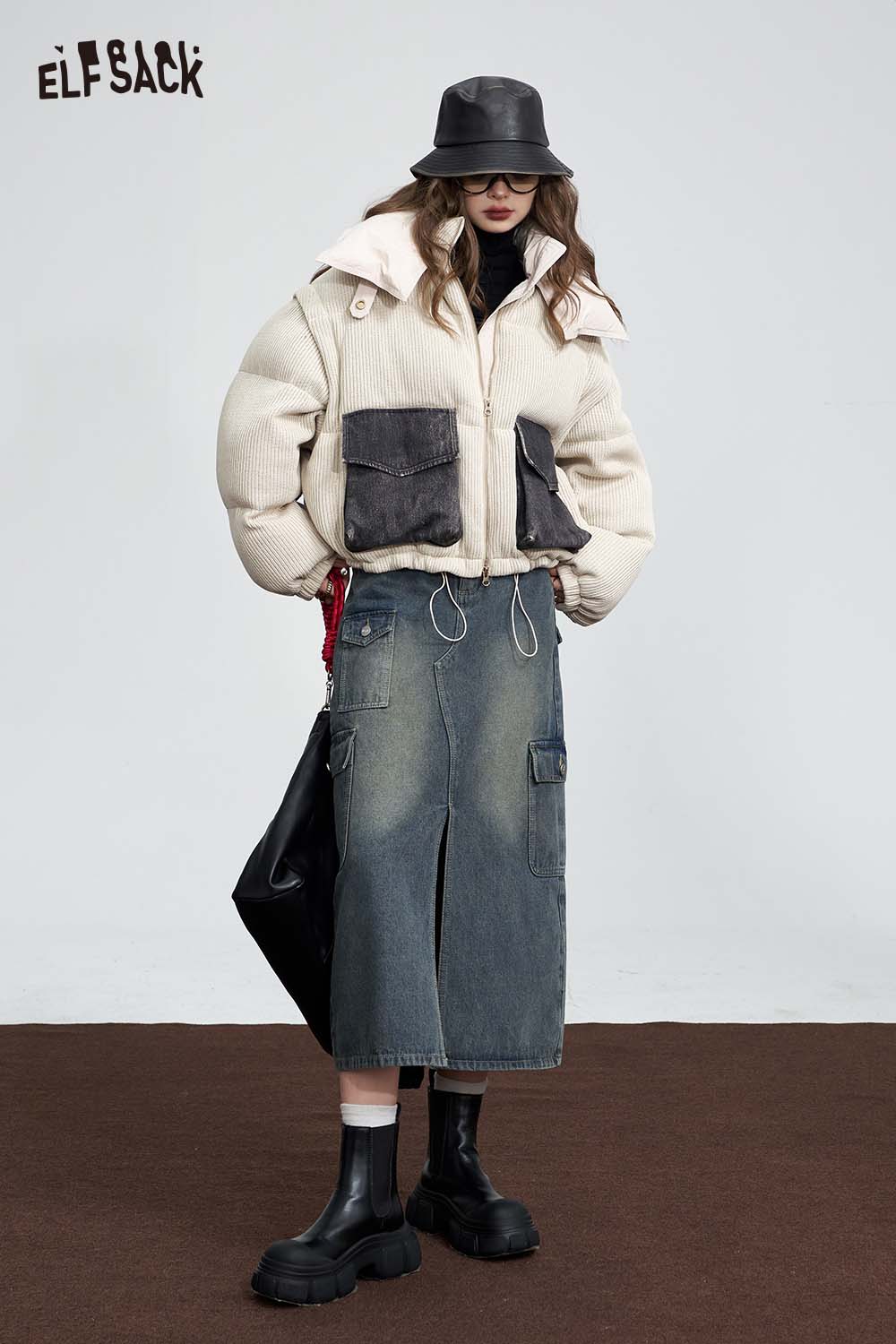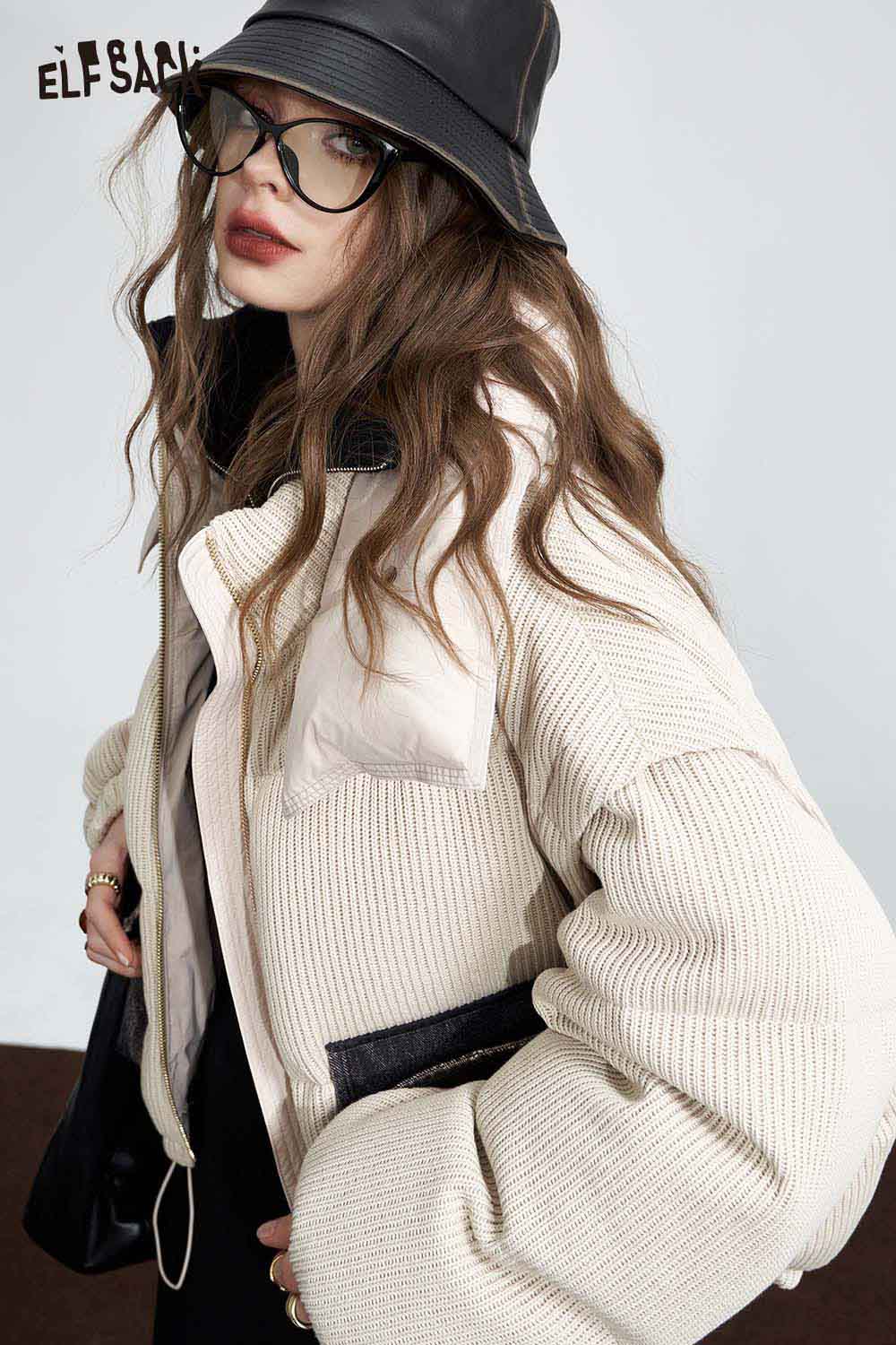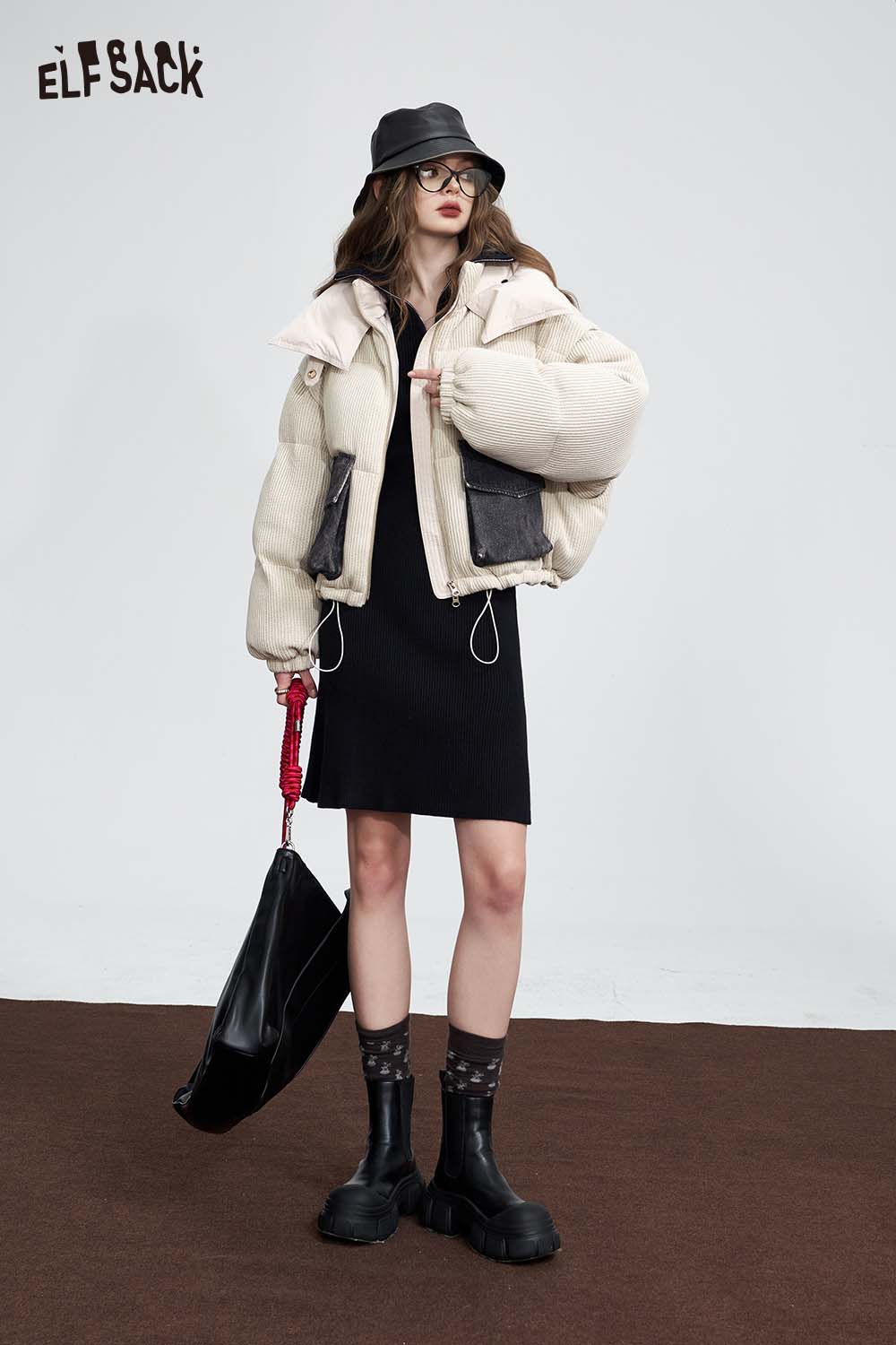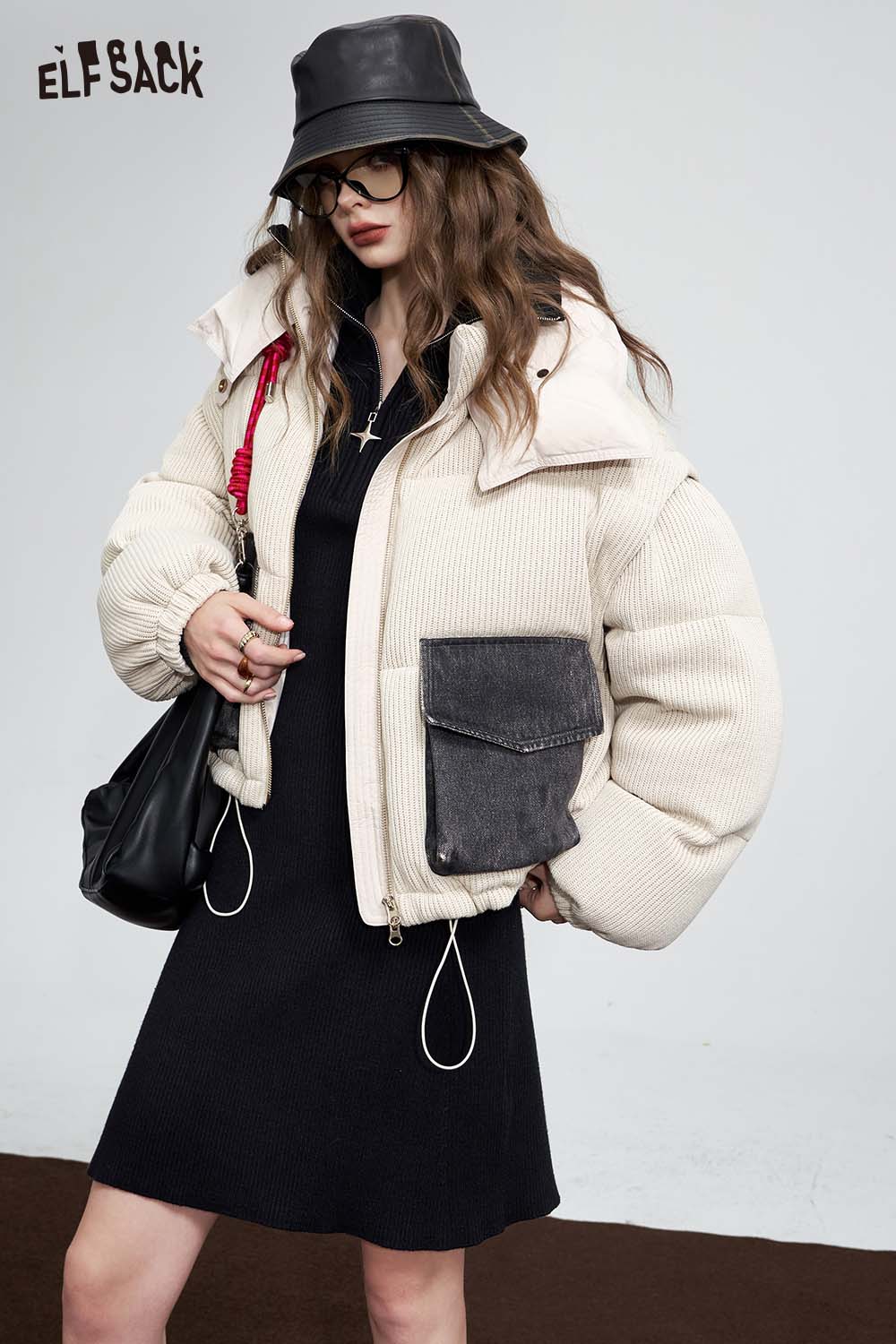 Panel Quilted Down Jacket Thick Warm Winter Puffer Coat
