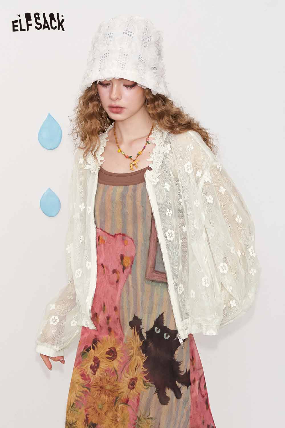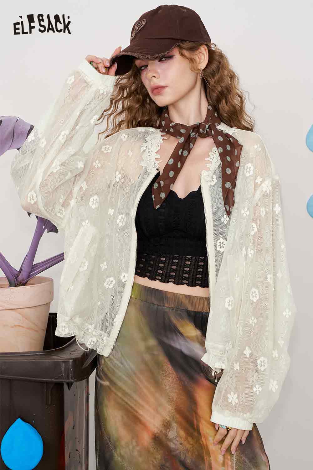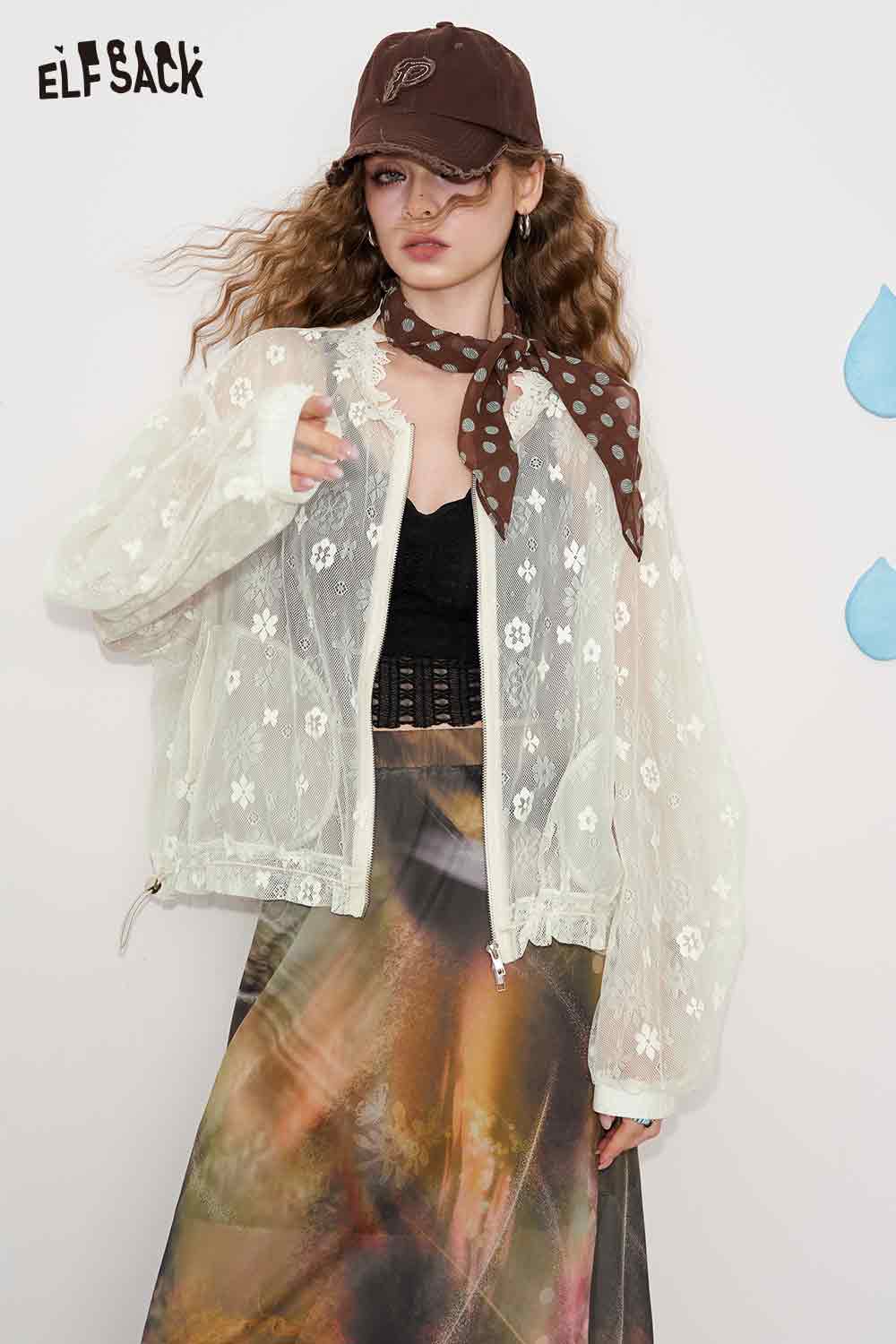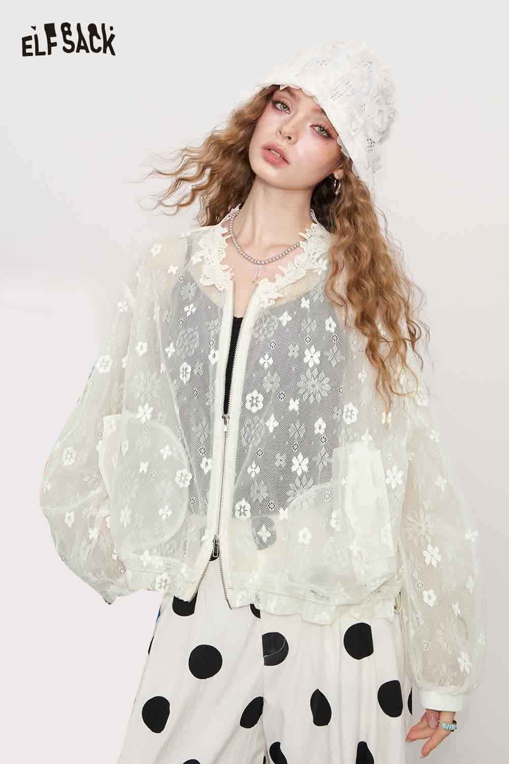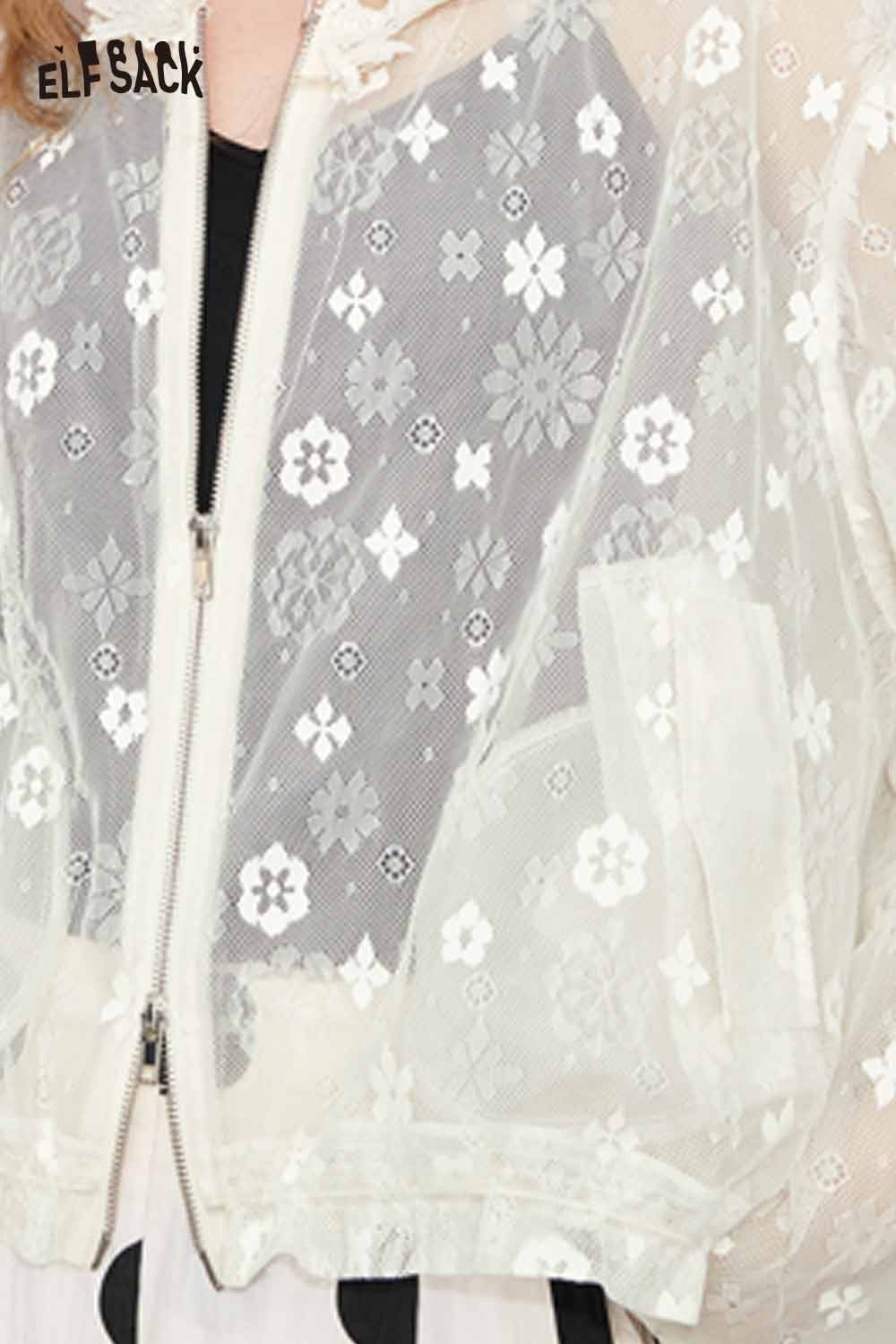 Lace White Jacquard Openwork Cover-Up Lightweight Breathable Summer Cardigan