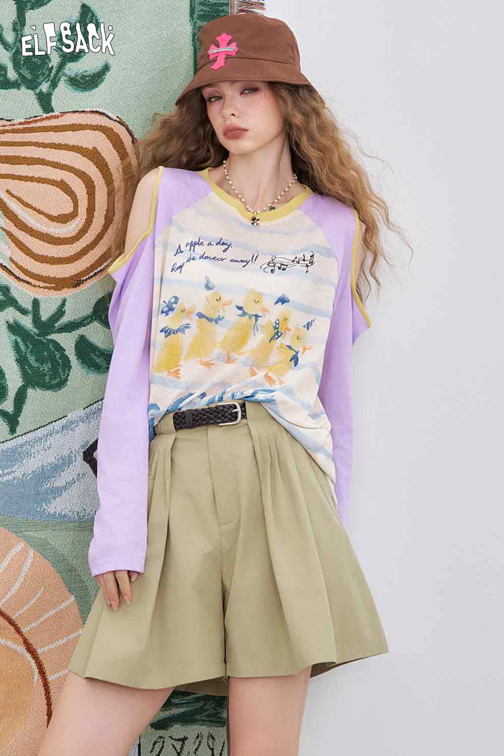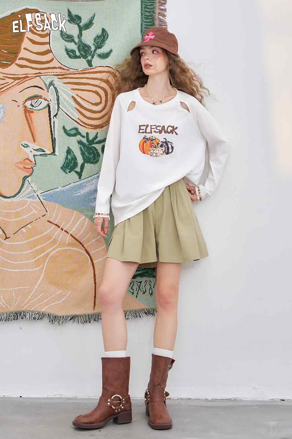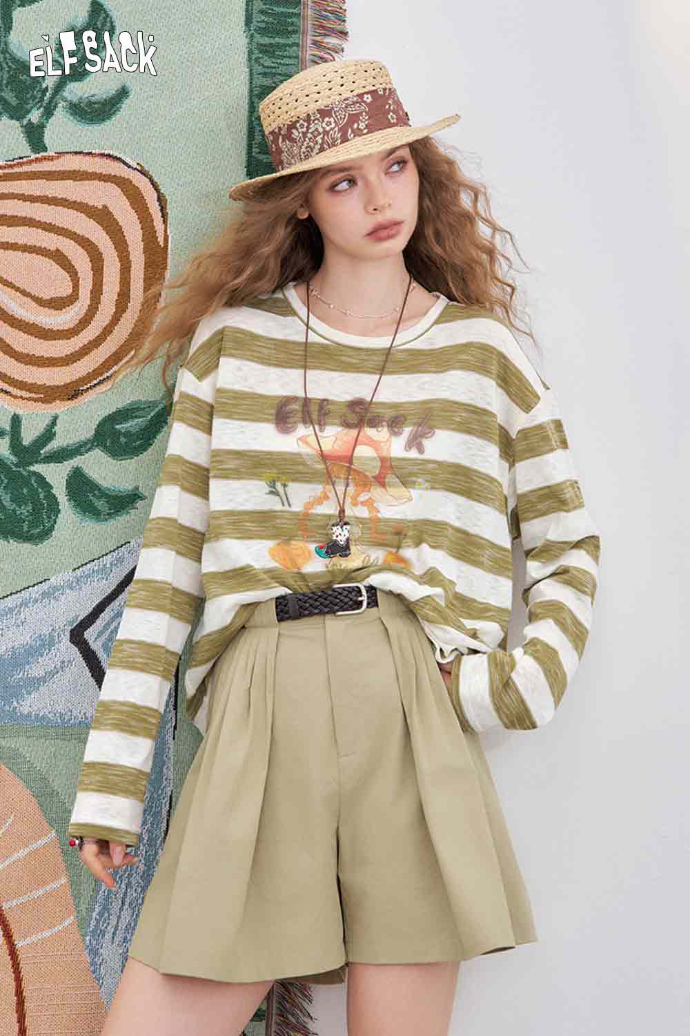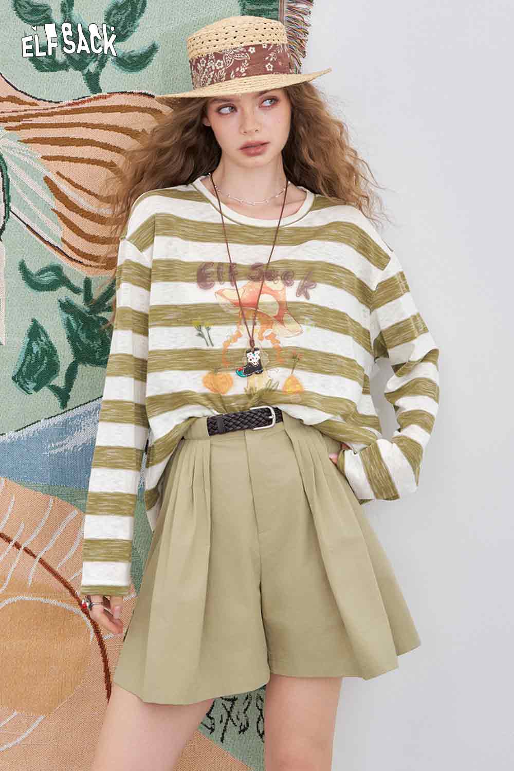 Cotton Loose A-Line Empire Solid Khaki Shorts