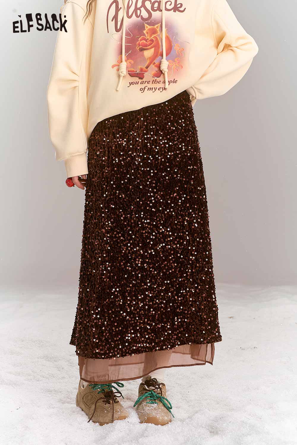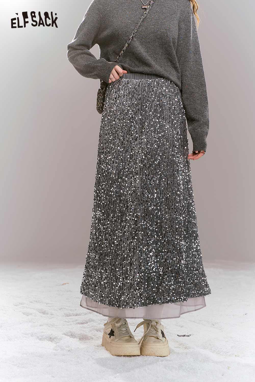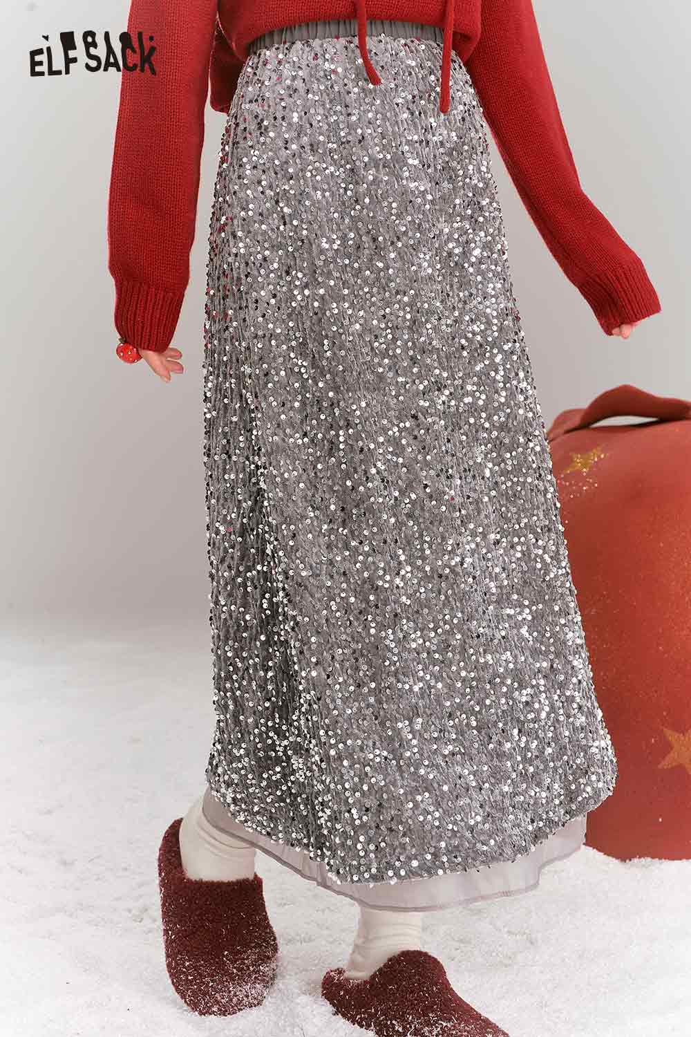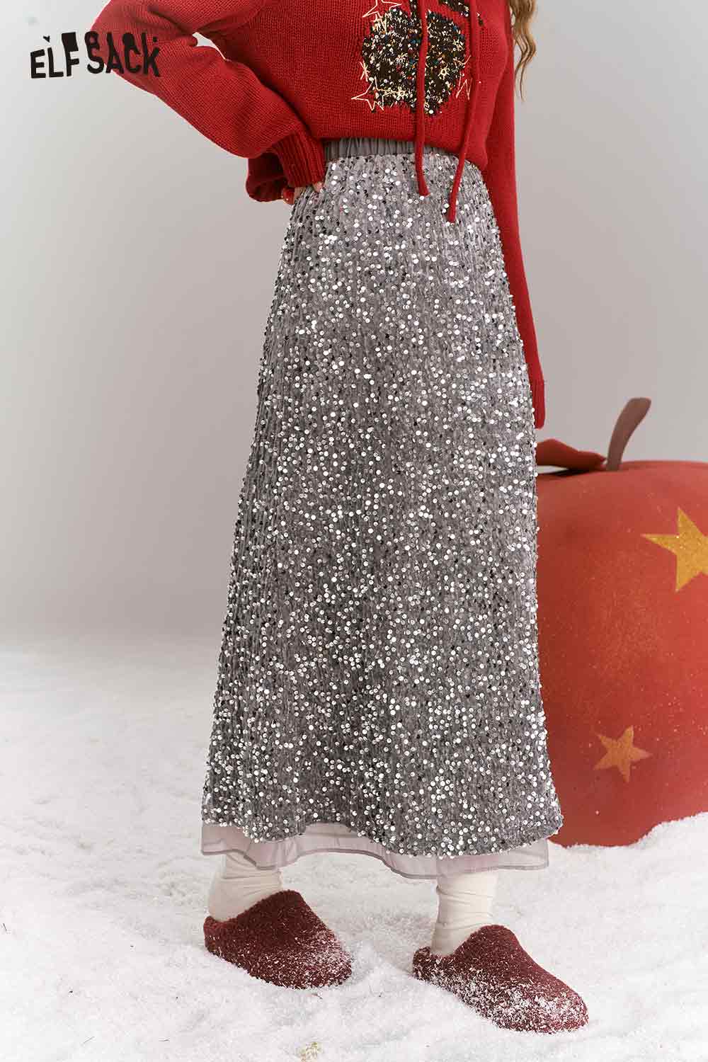 Heavy Sequins High Waist Straight Leg Long Skirt