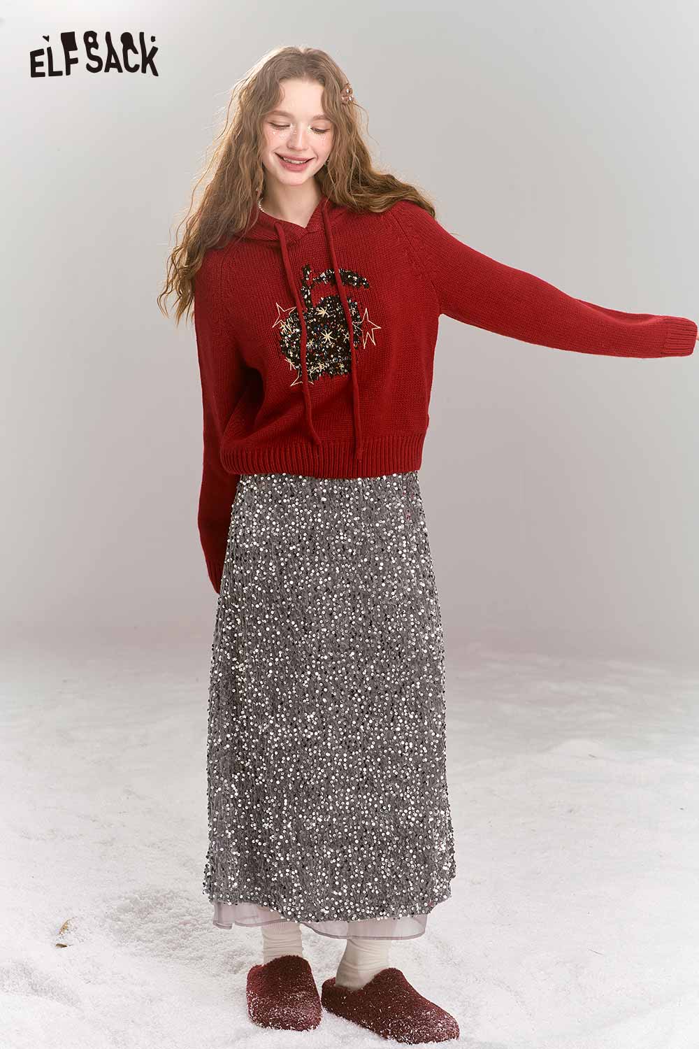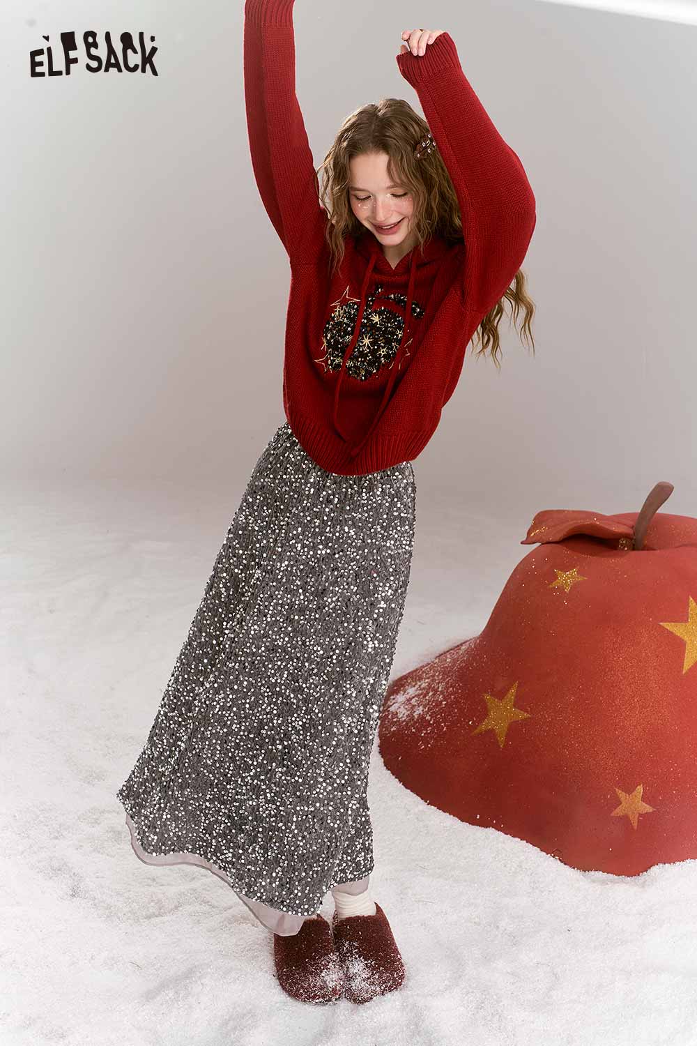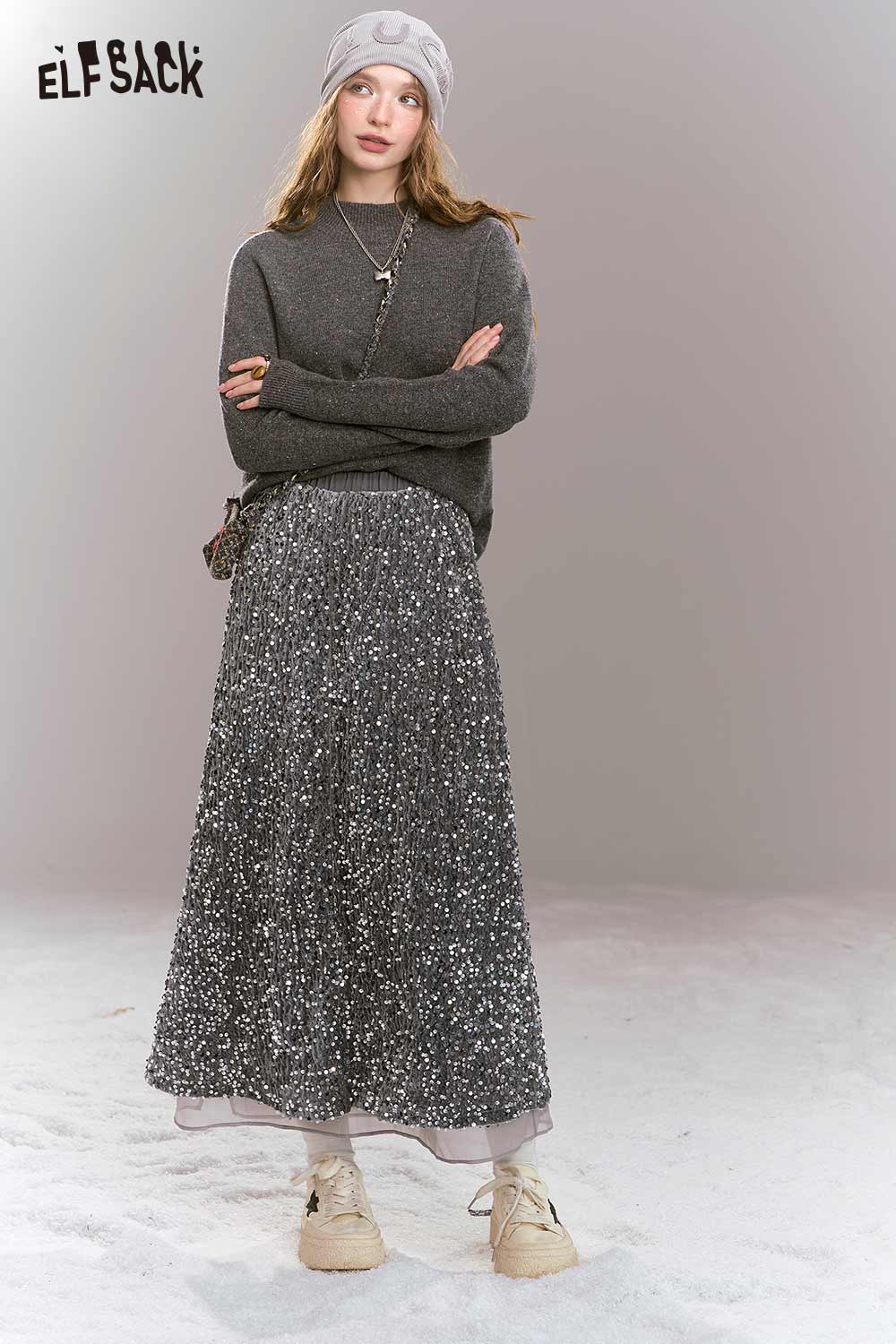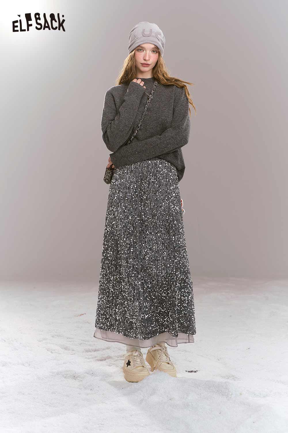 Heavy Sequins High Waist Straight Leg Long Skirt