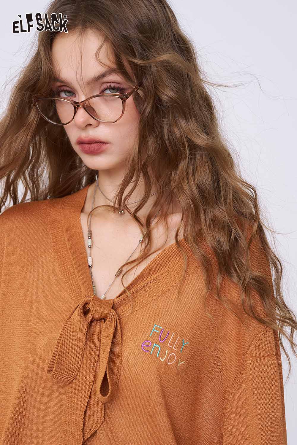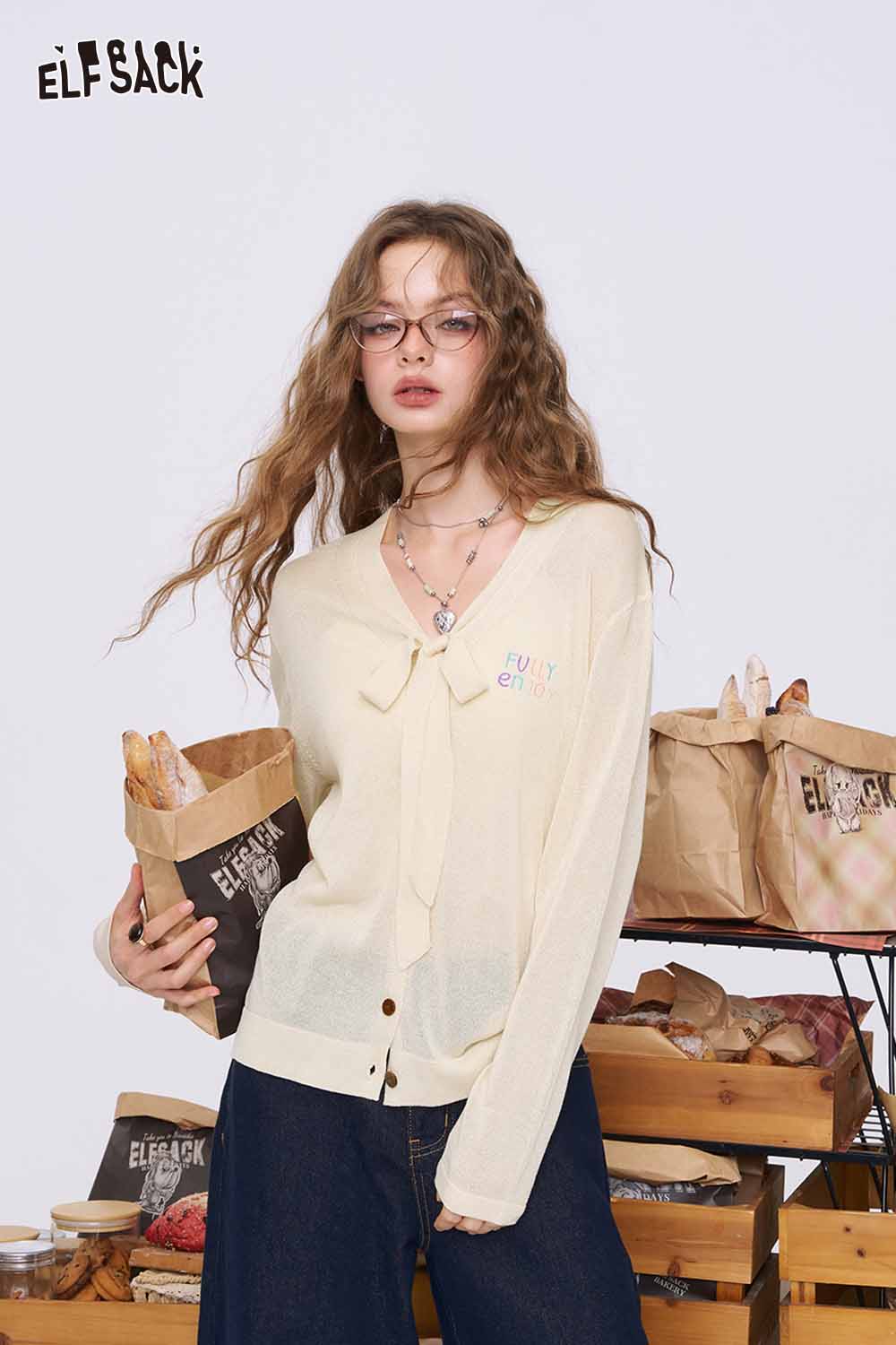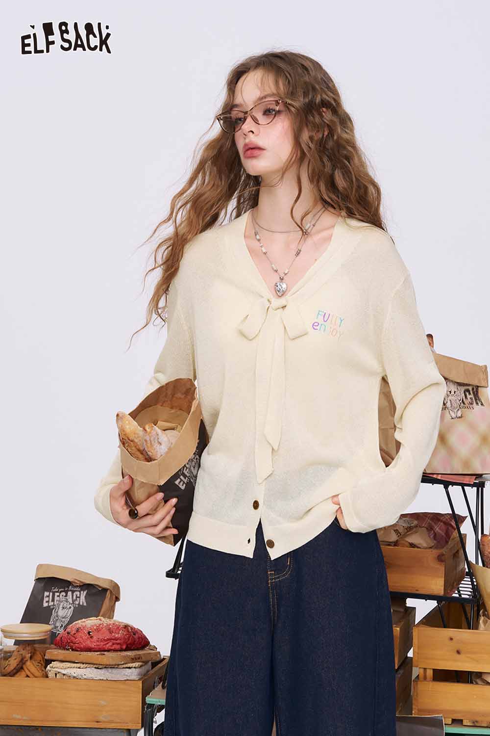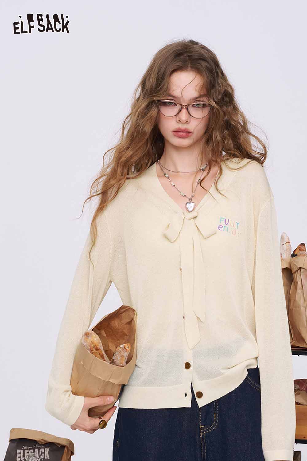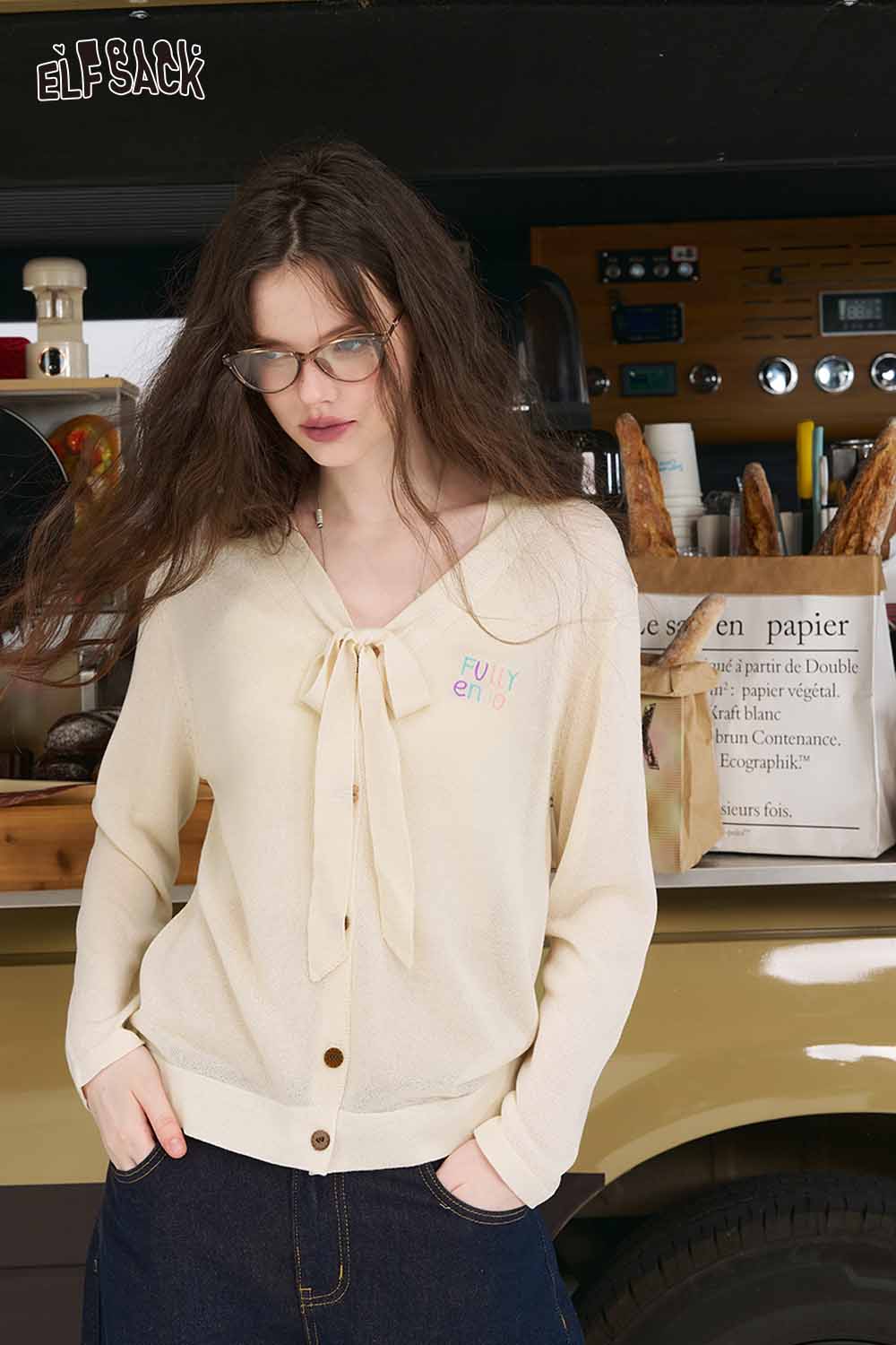 Minimalist French Neckline Tie Bow Knitwear Cardigan
