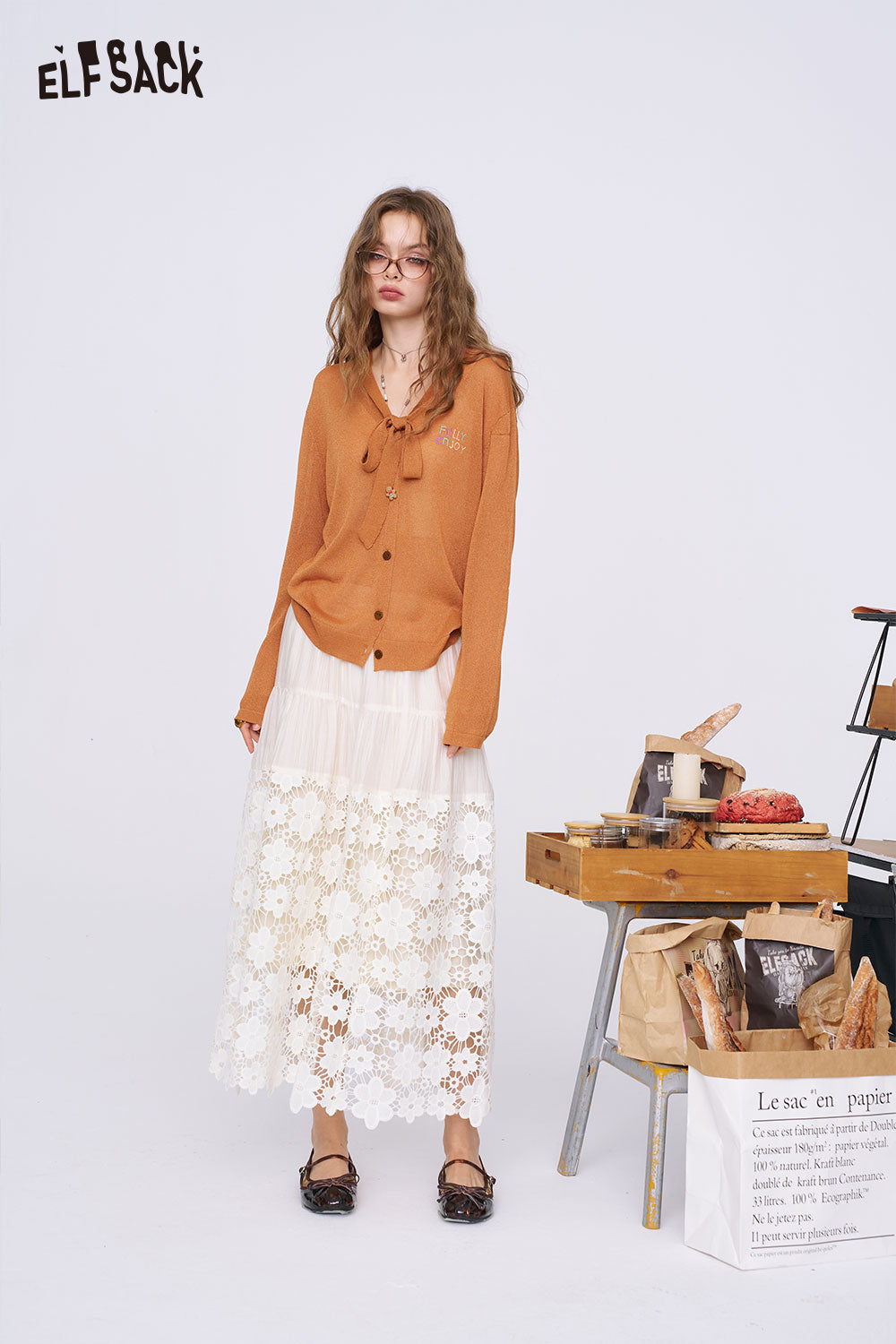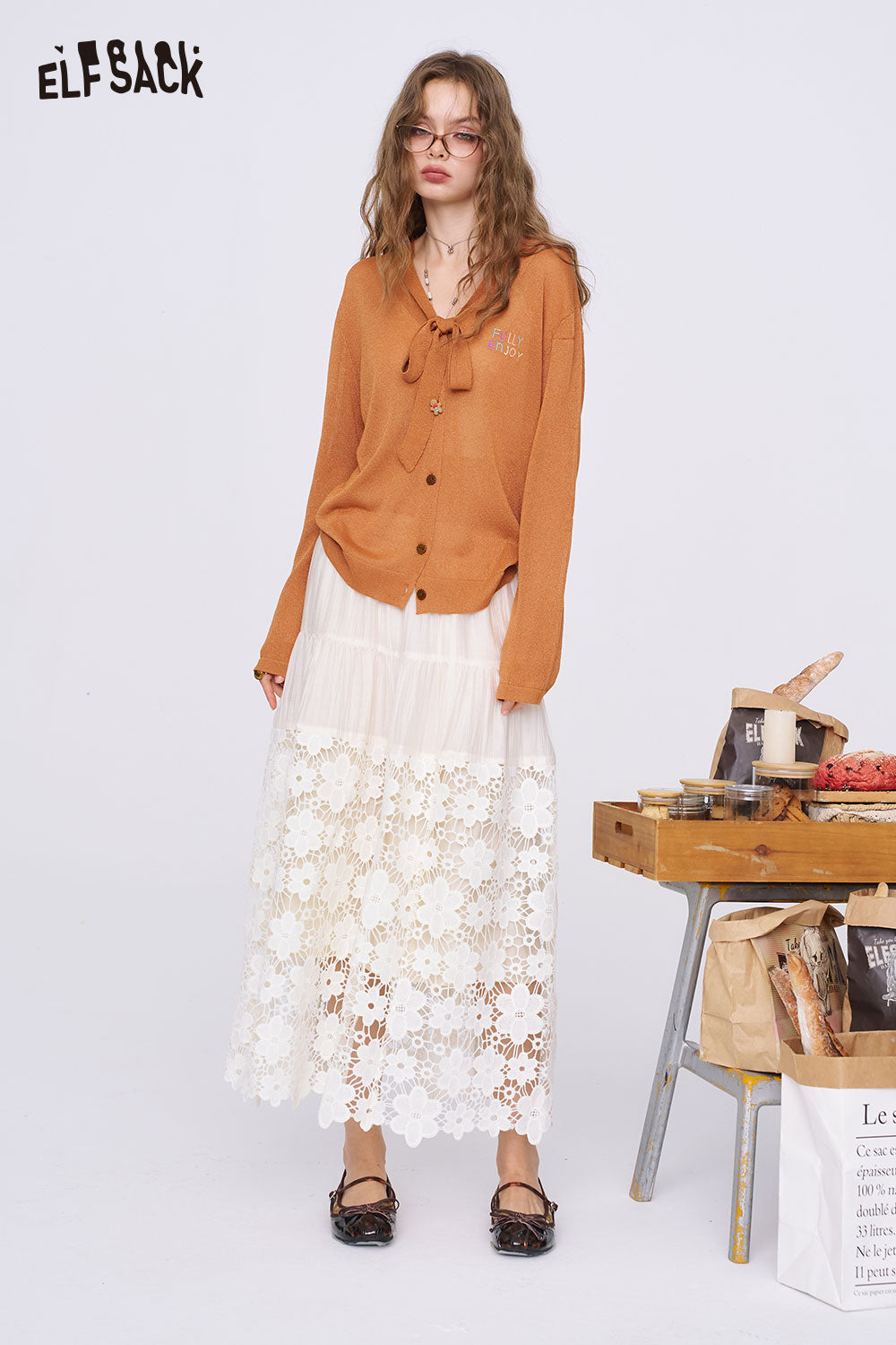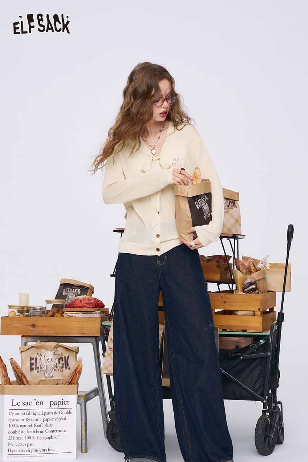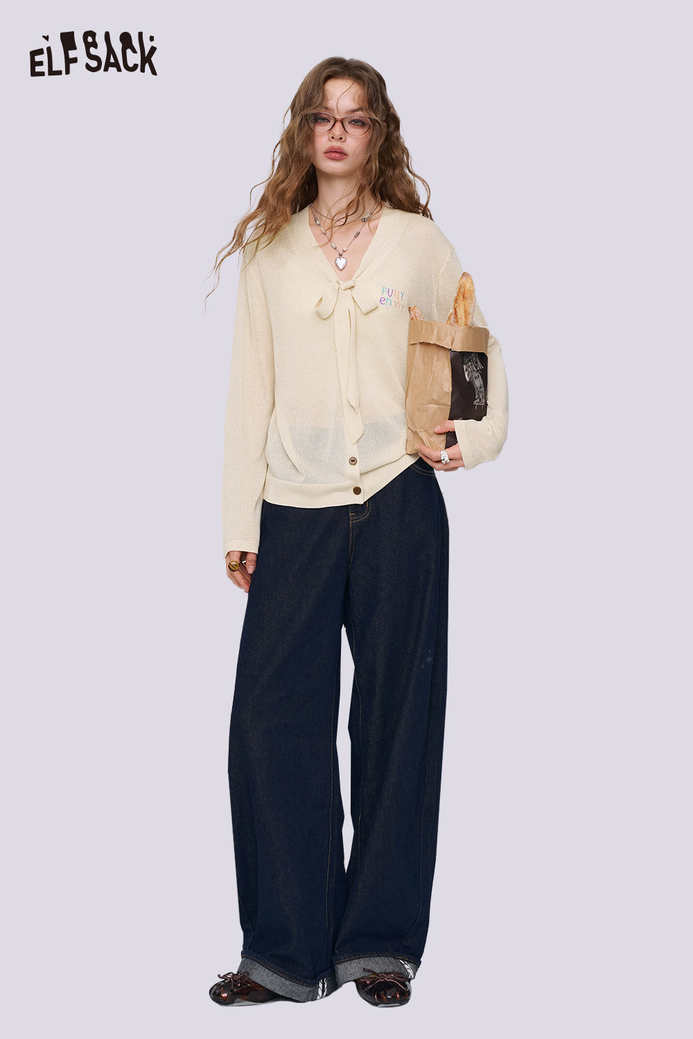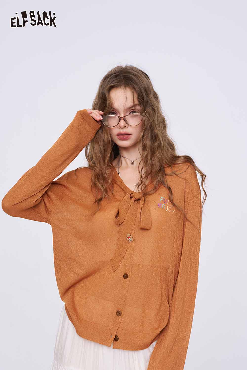 Minimalist French Neckline Tie Bow Knitwear Cardigan