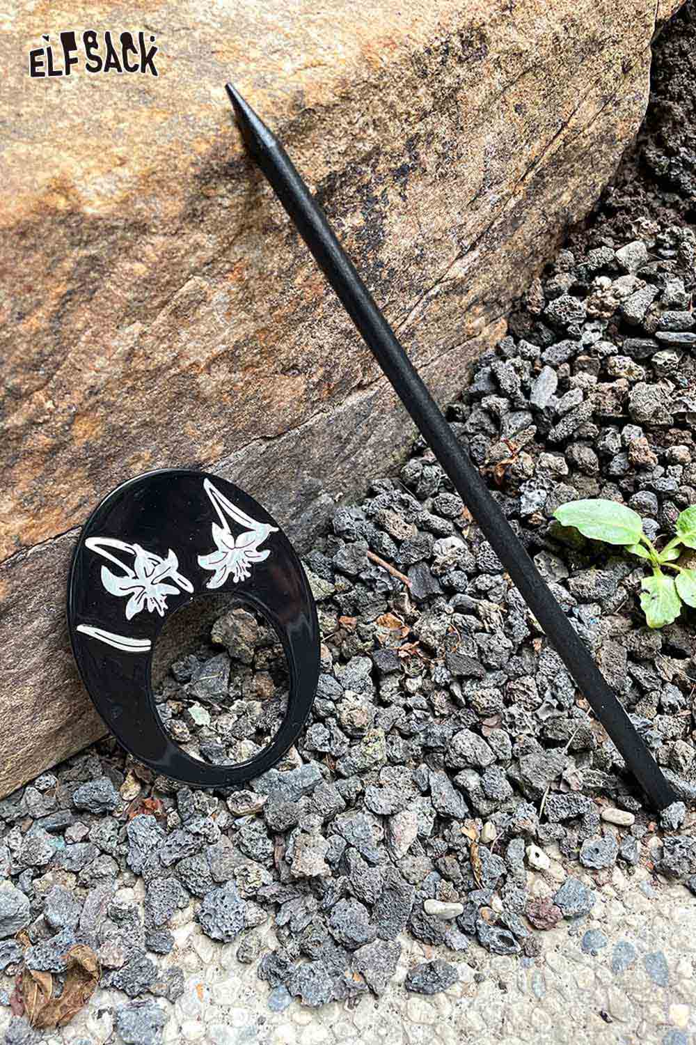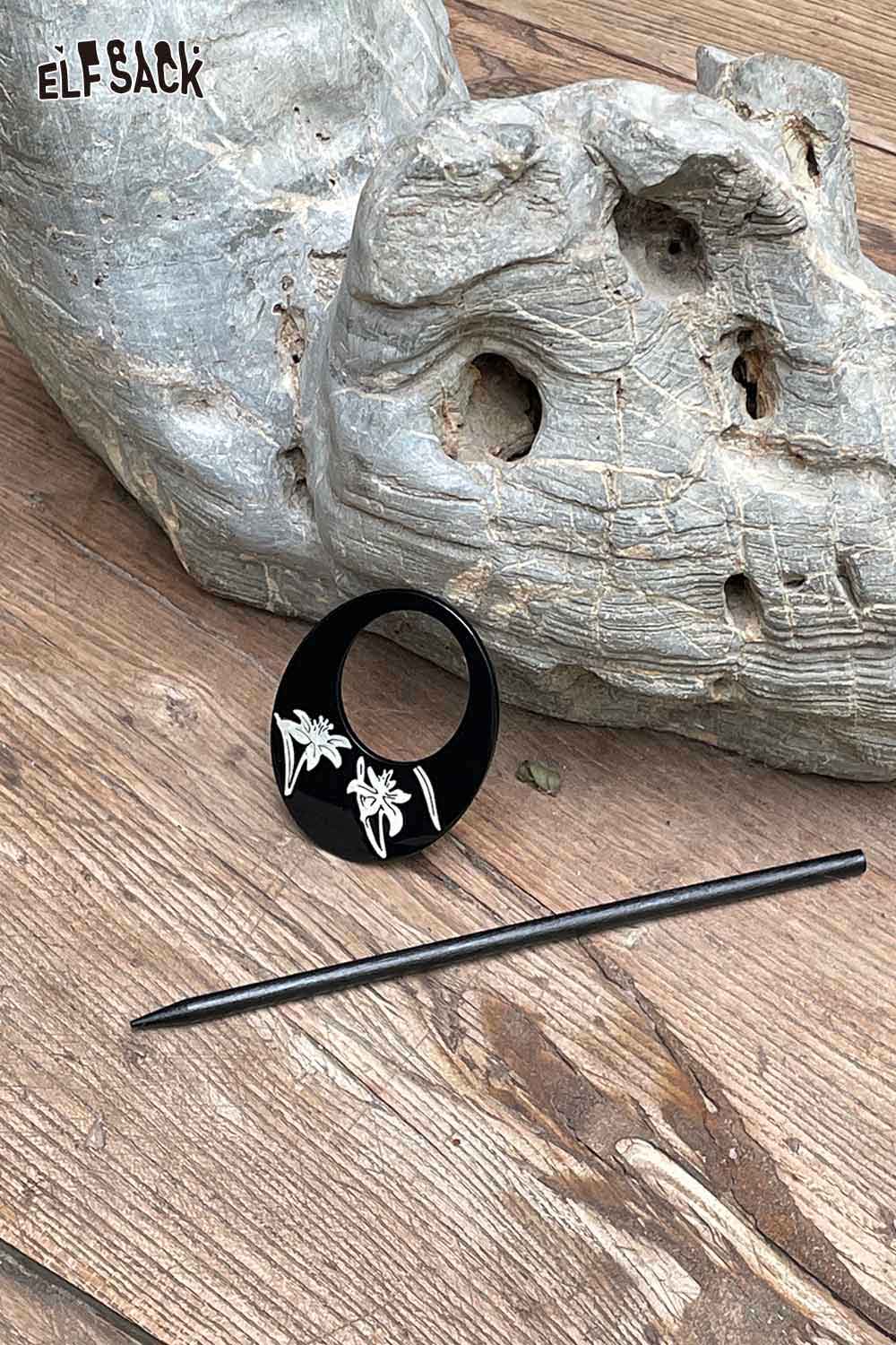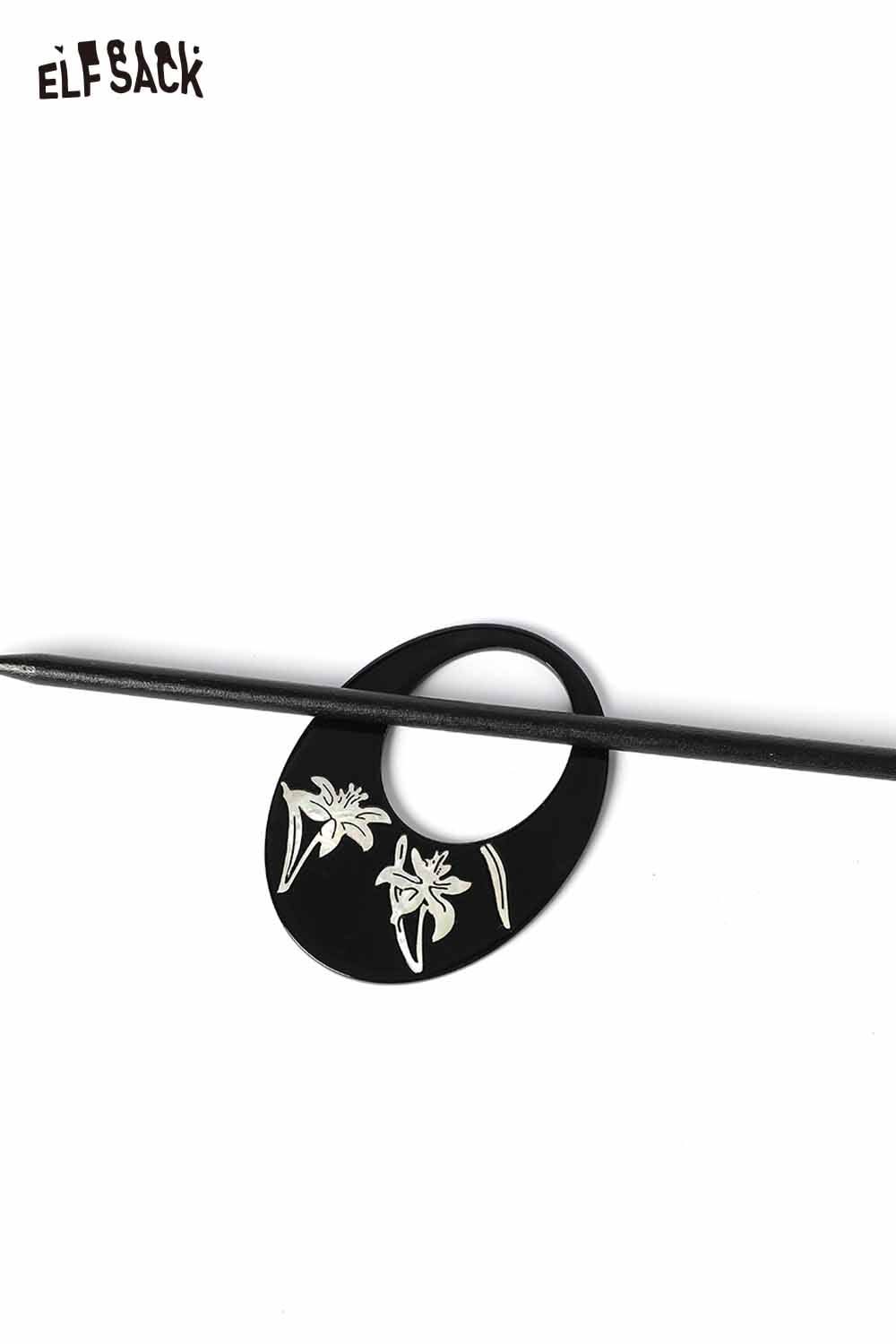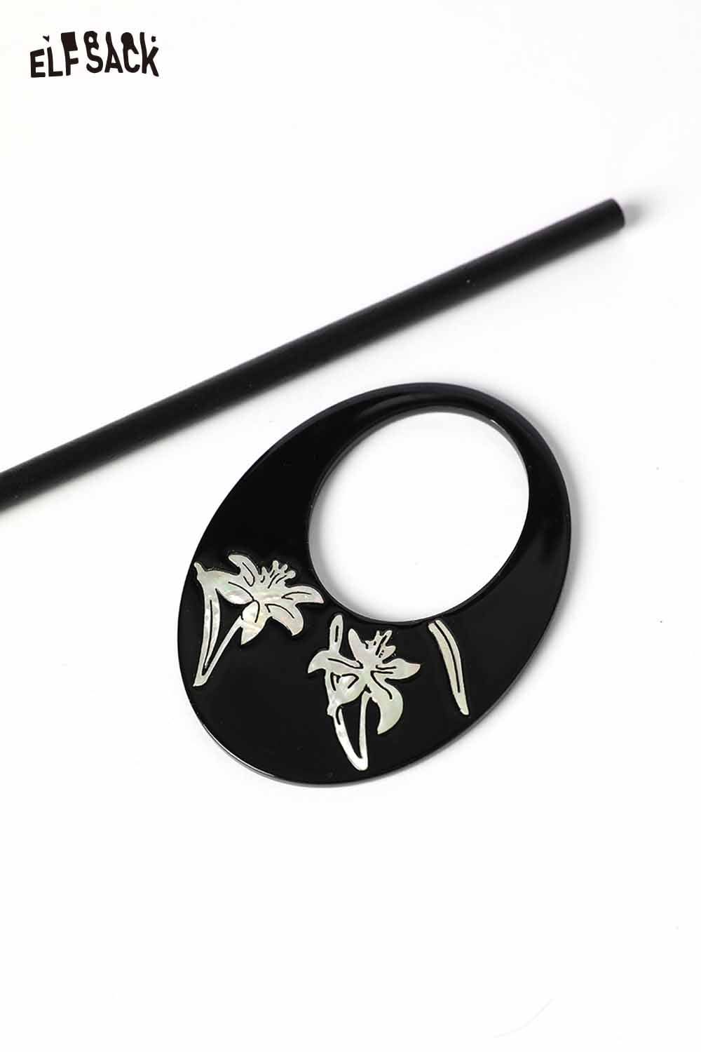 Black Carved Orchid Motif Vintage Inspired Lacquer Hairpin