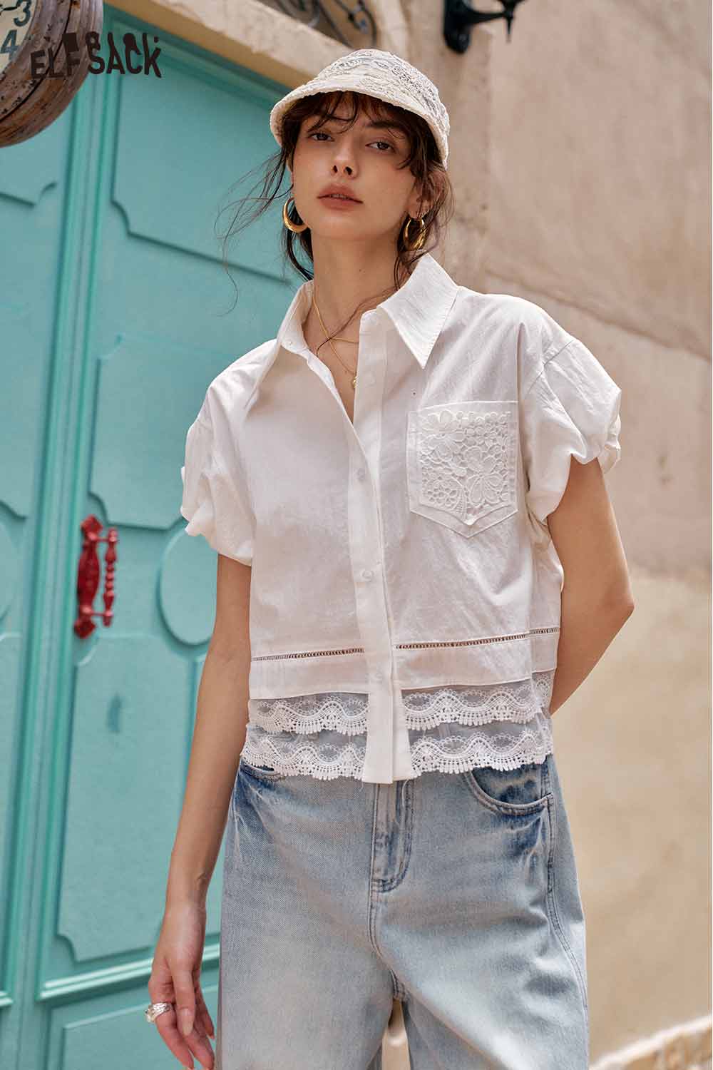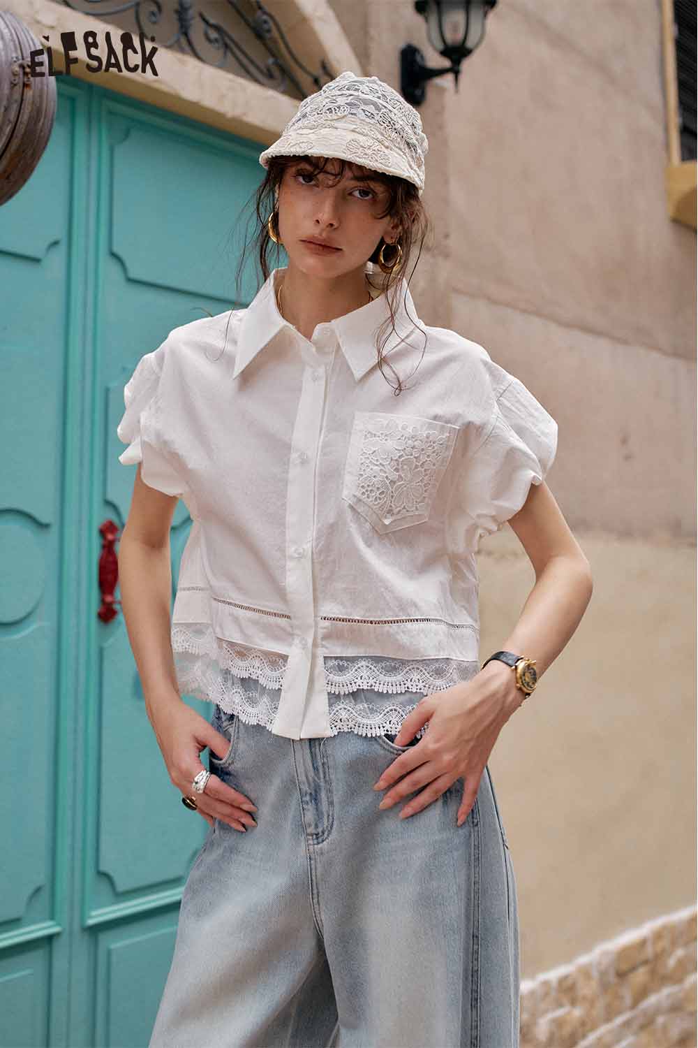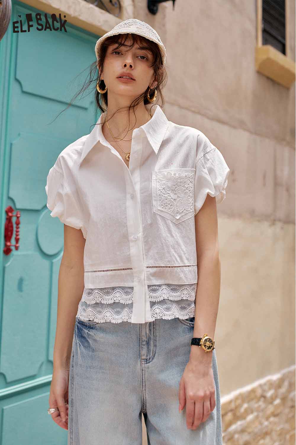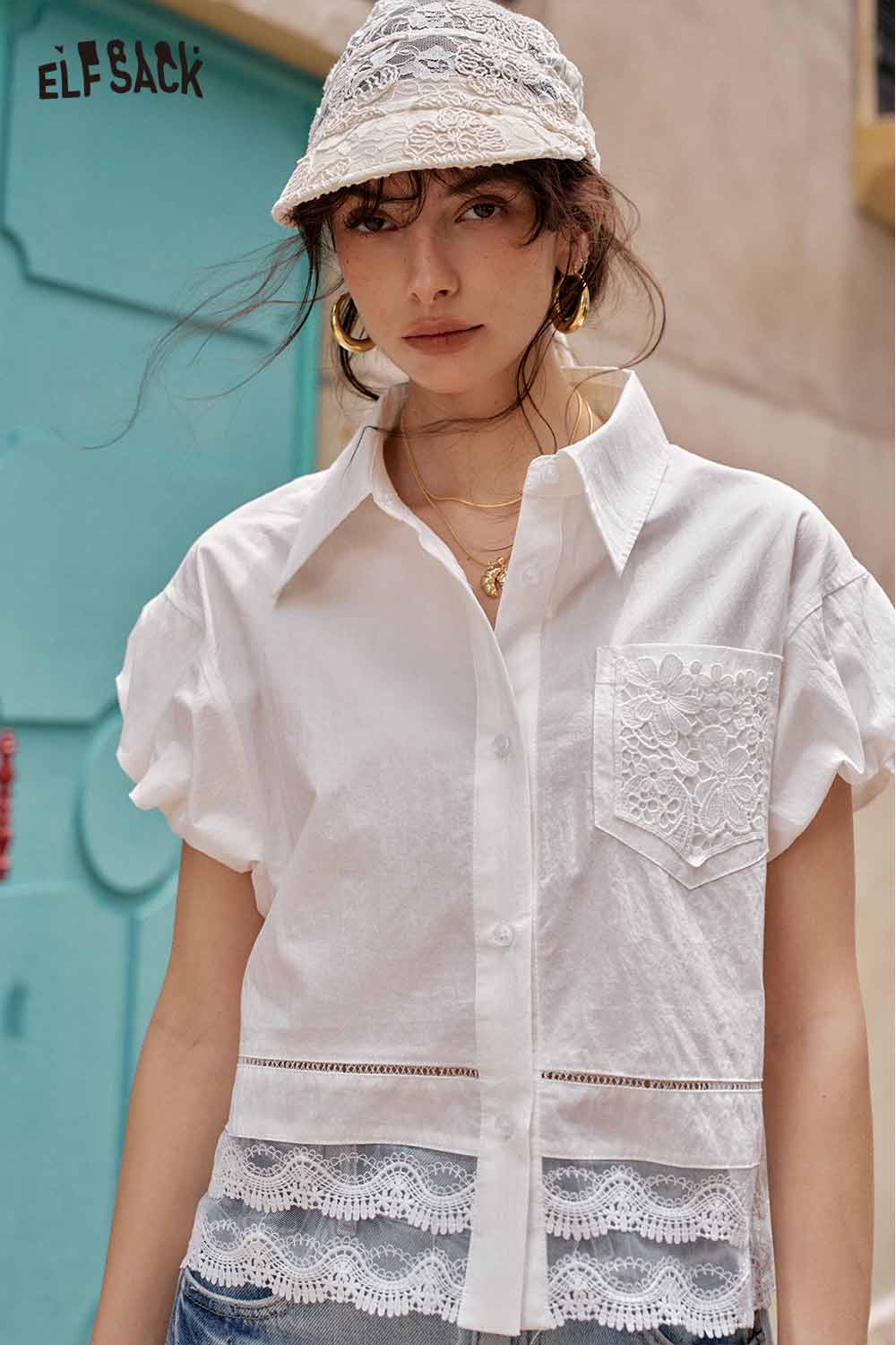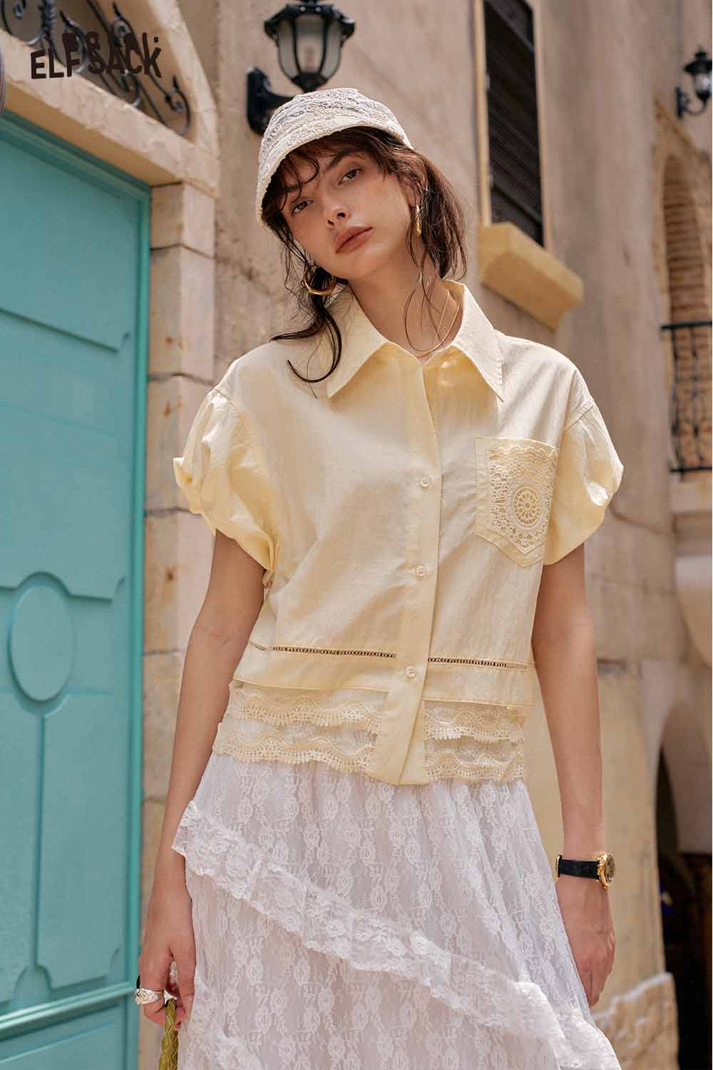 Cute French Design Short Sleeve Elegant Blouse