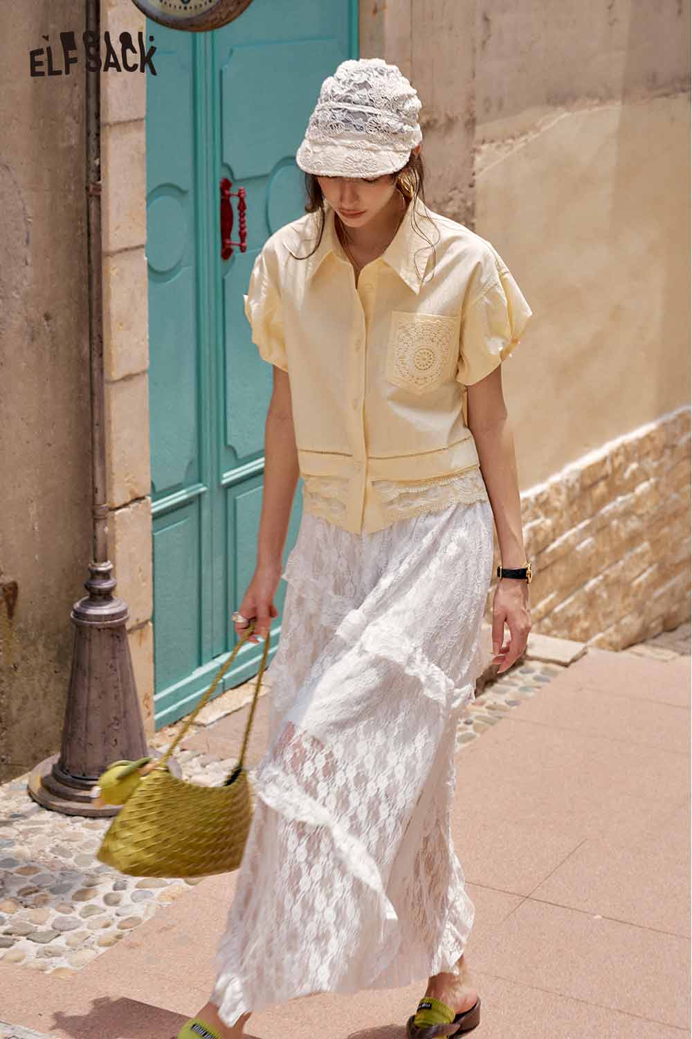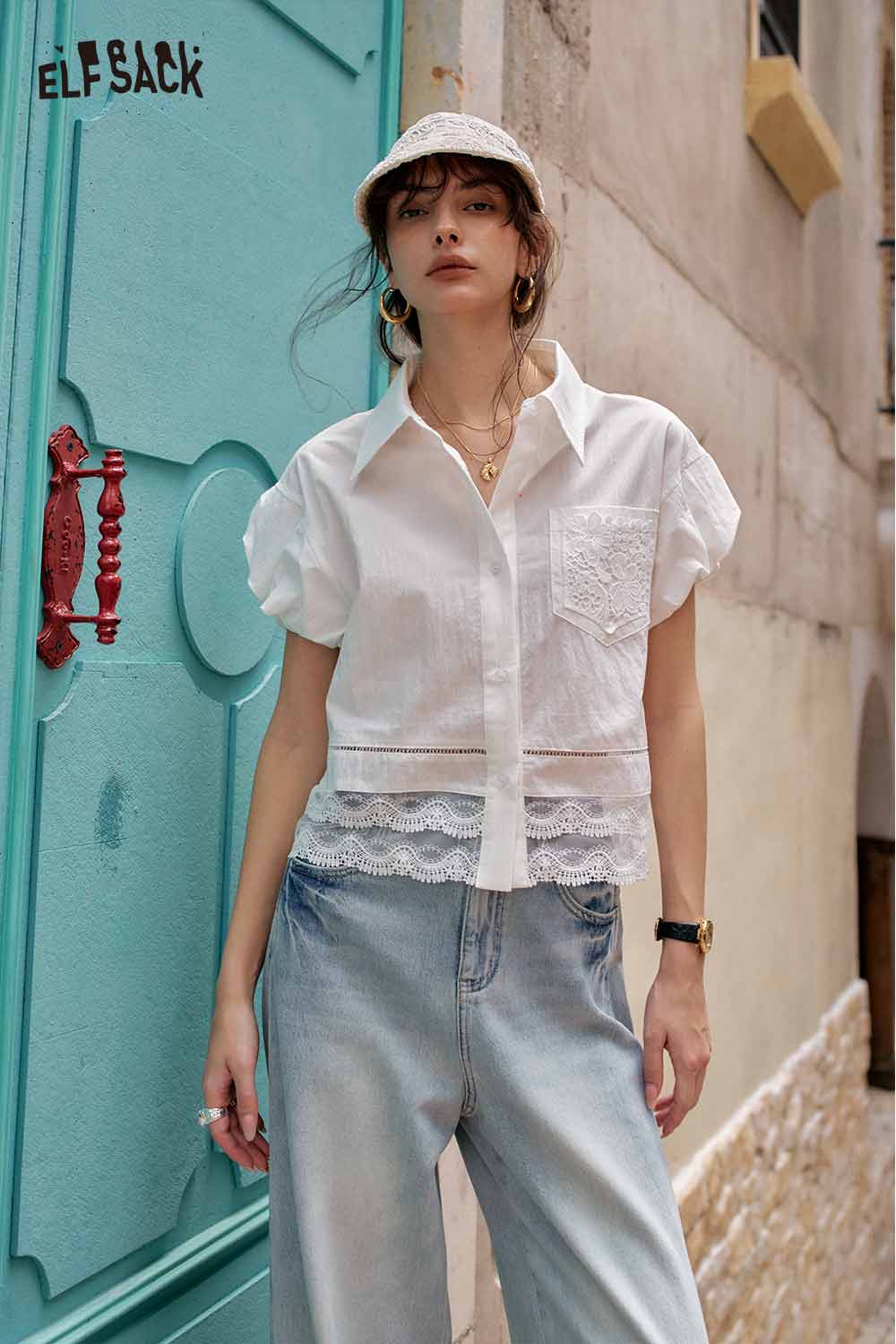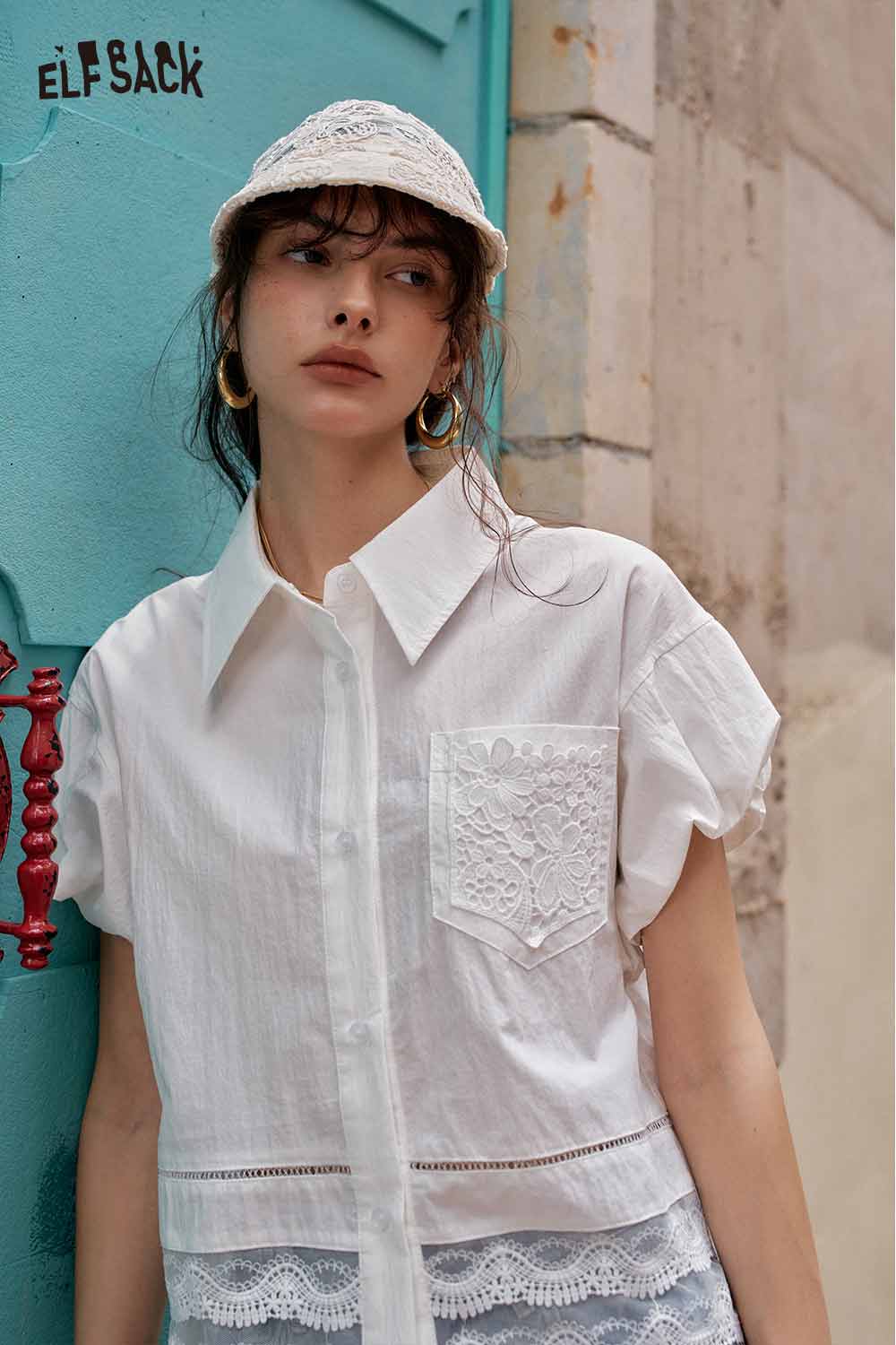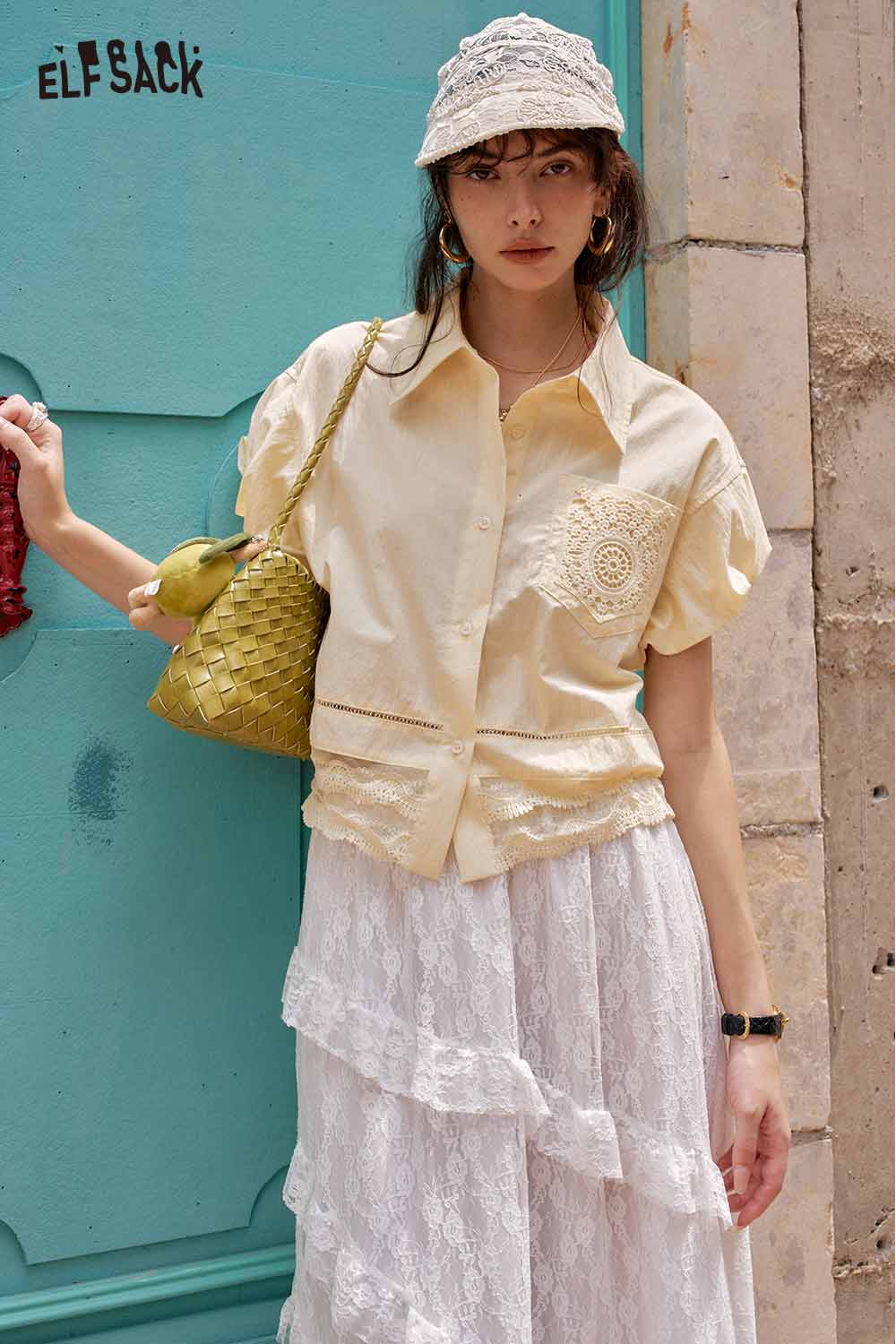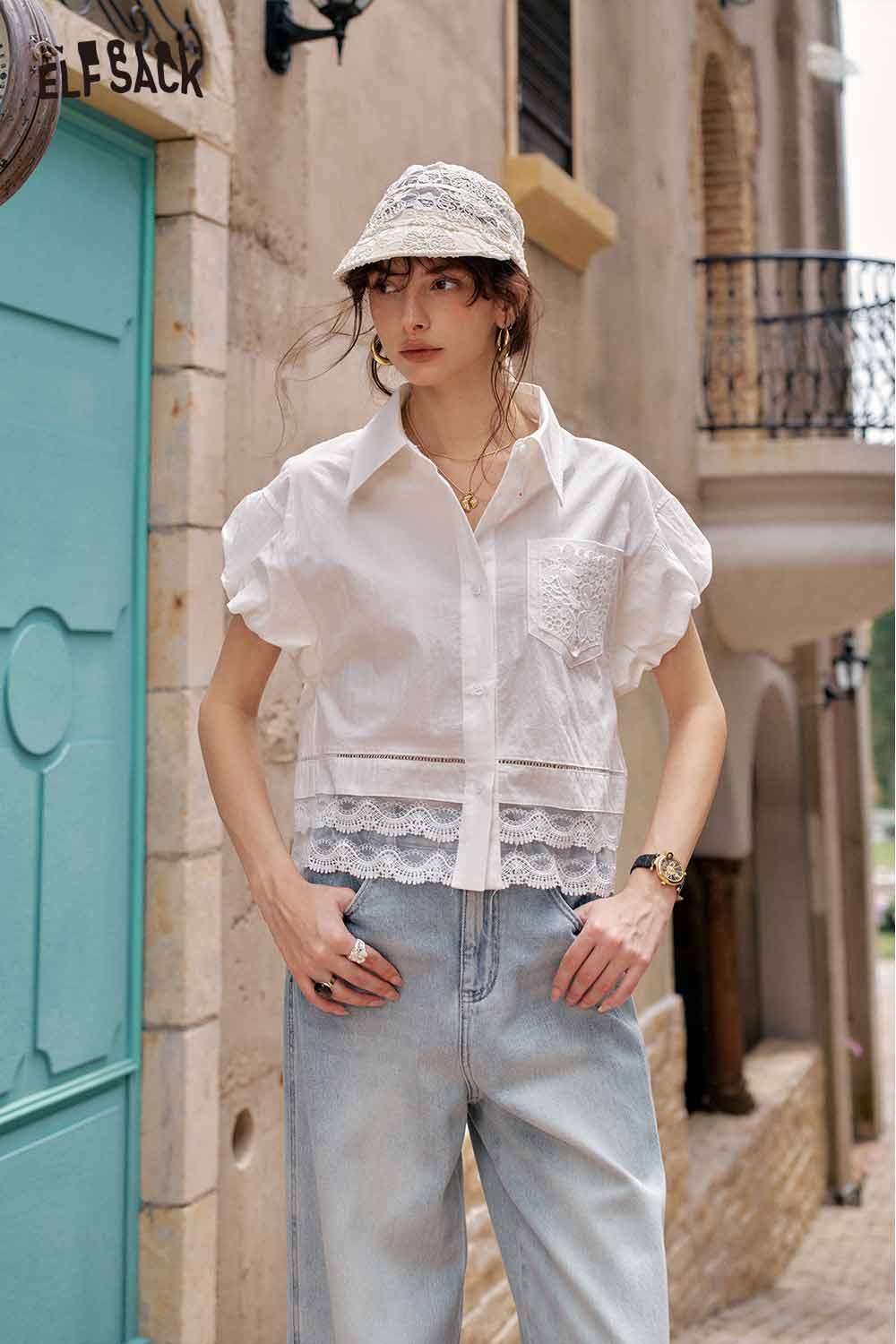 Cute French Design Short Sleeve Elegant Blouse
