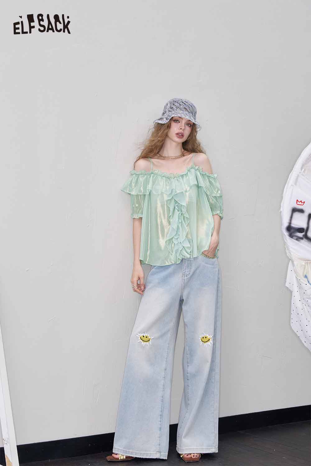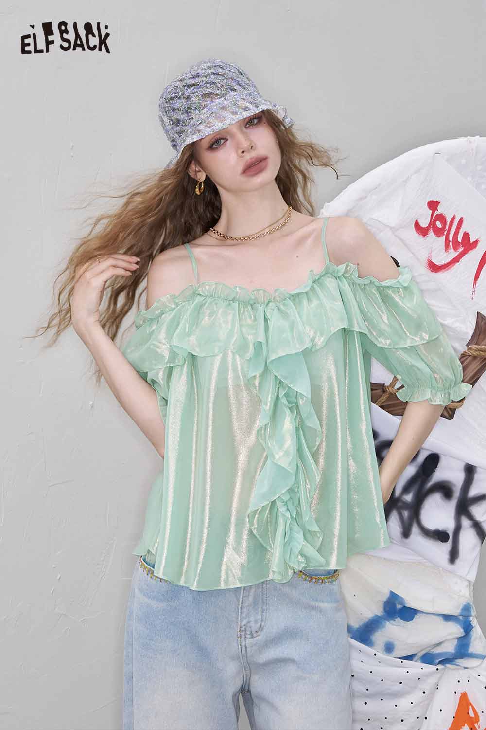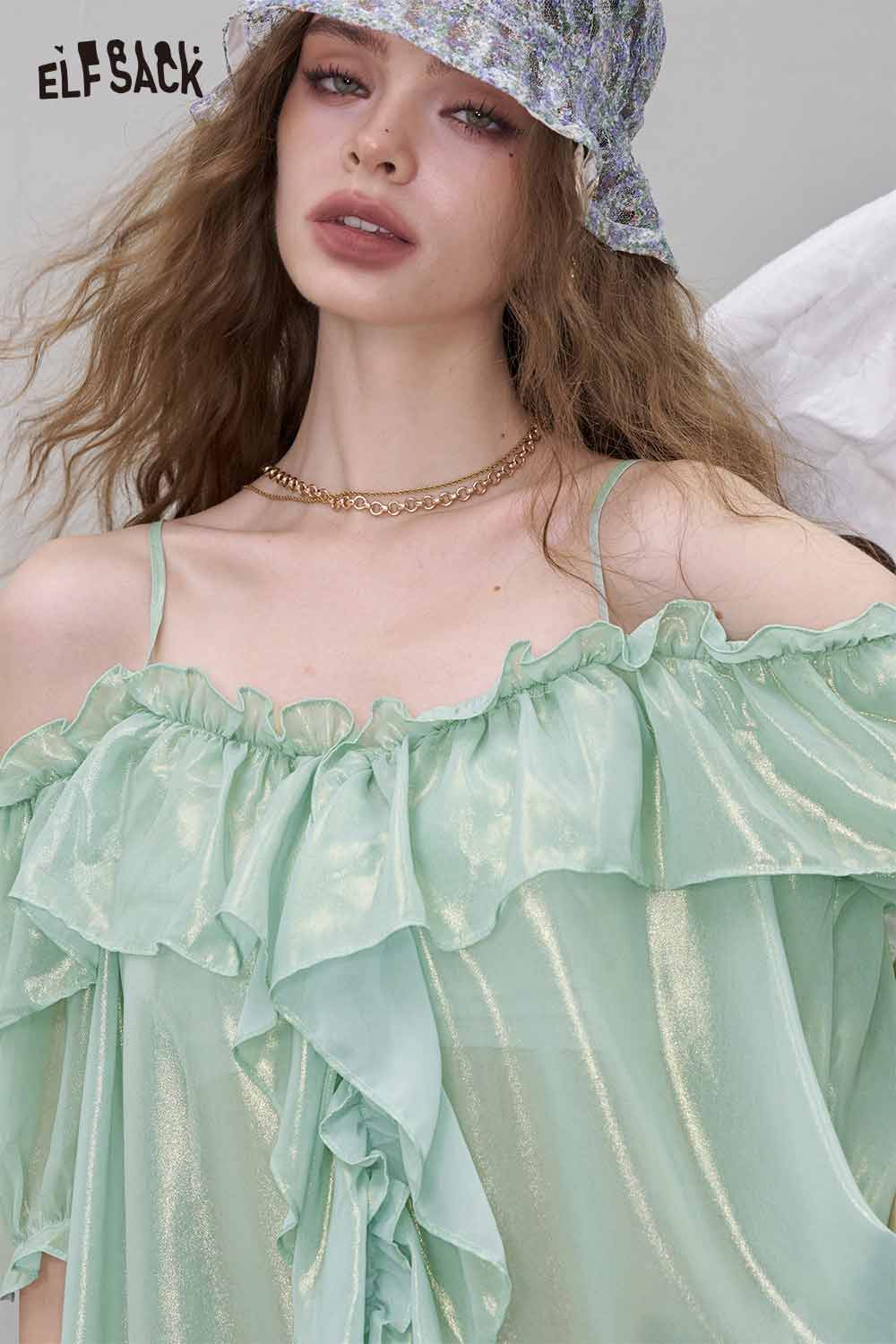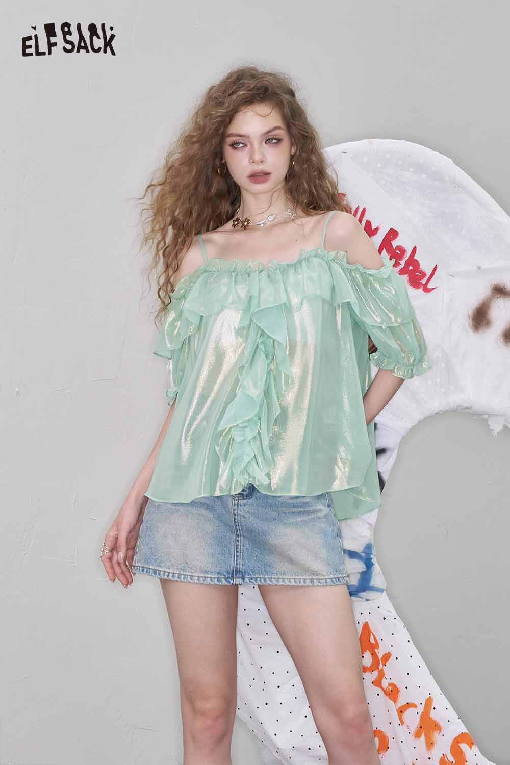 Cute Sparkle Off Shoulder Chiffon Pure Top