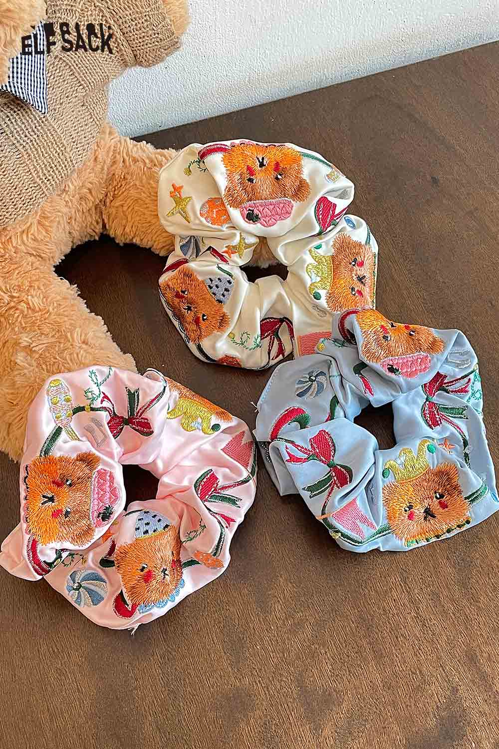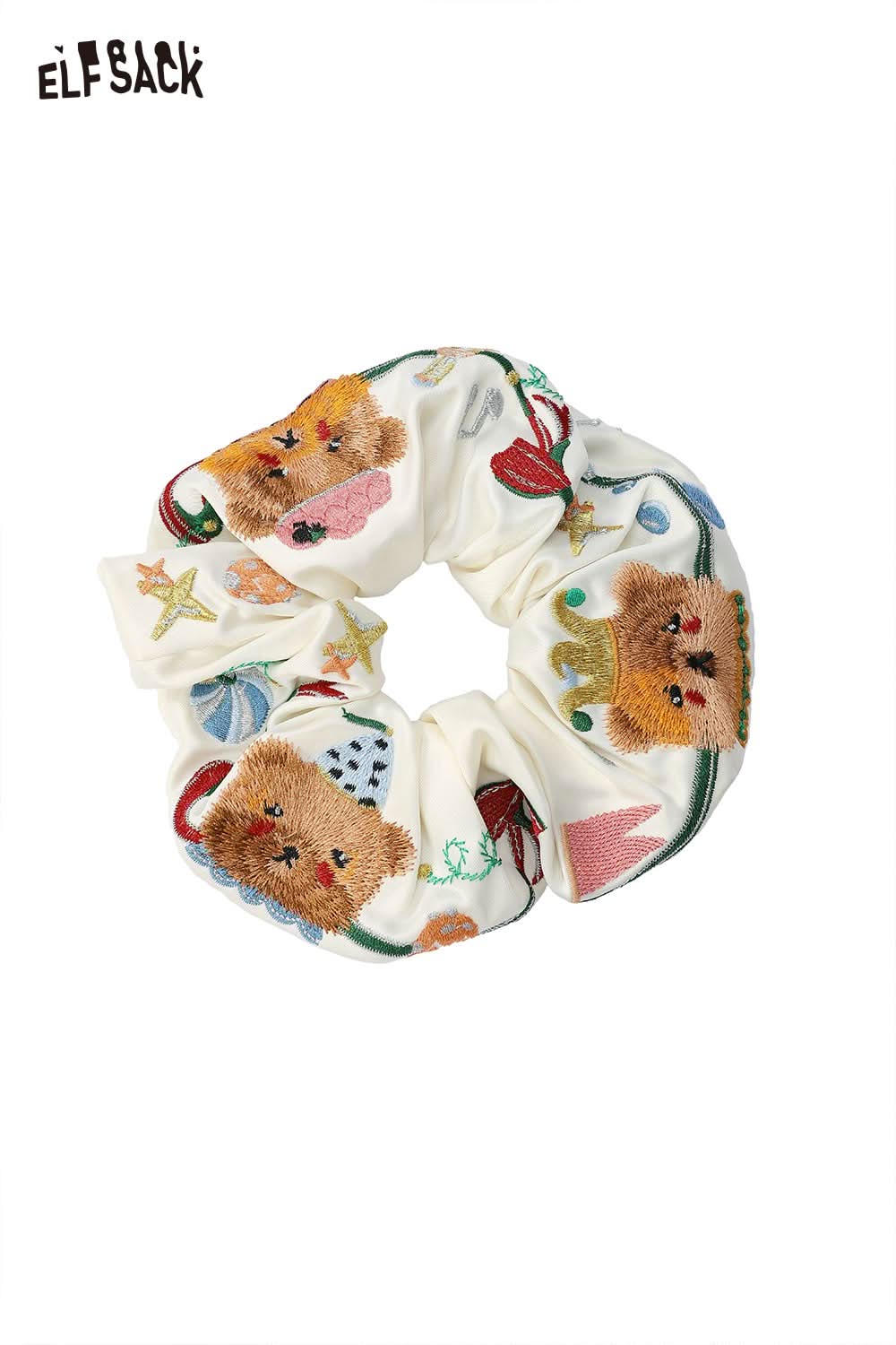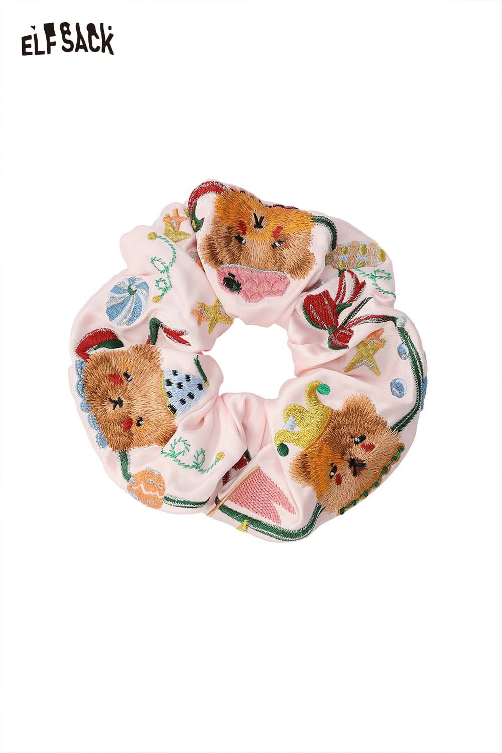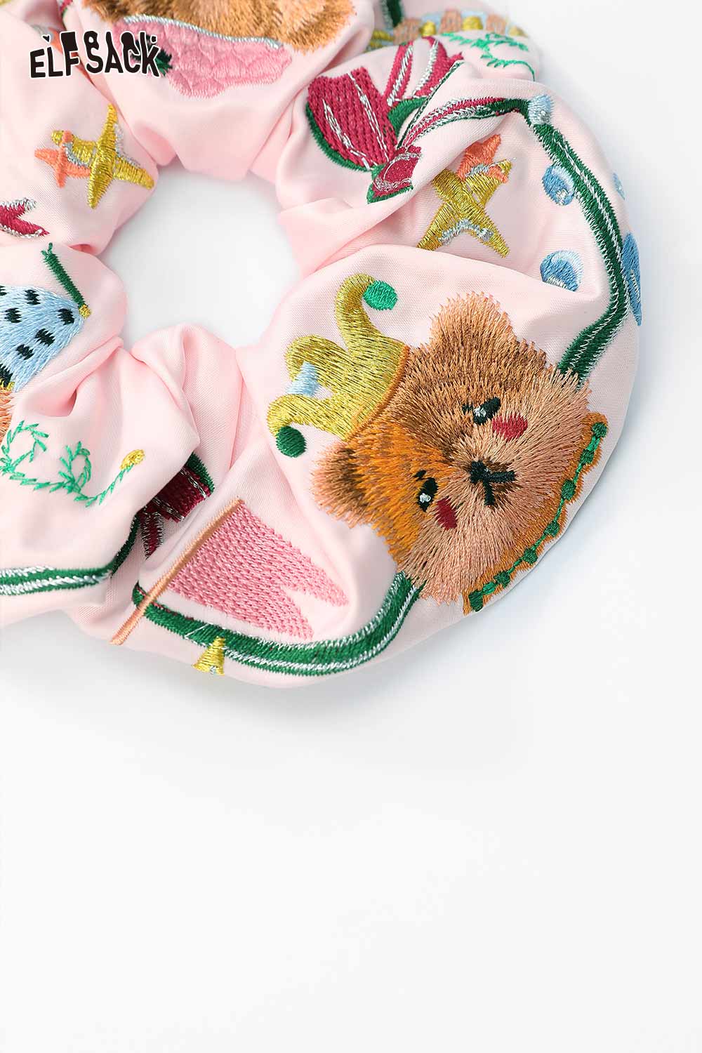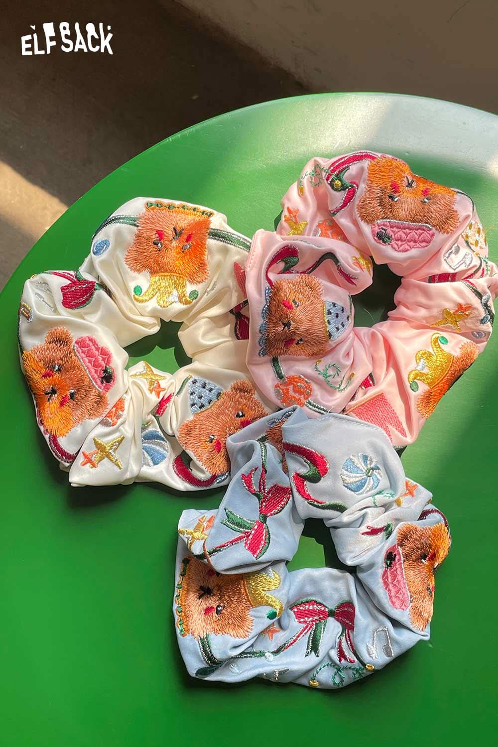 Embroidered Bear and Bow Design Elastic Hair Tie