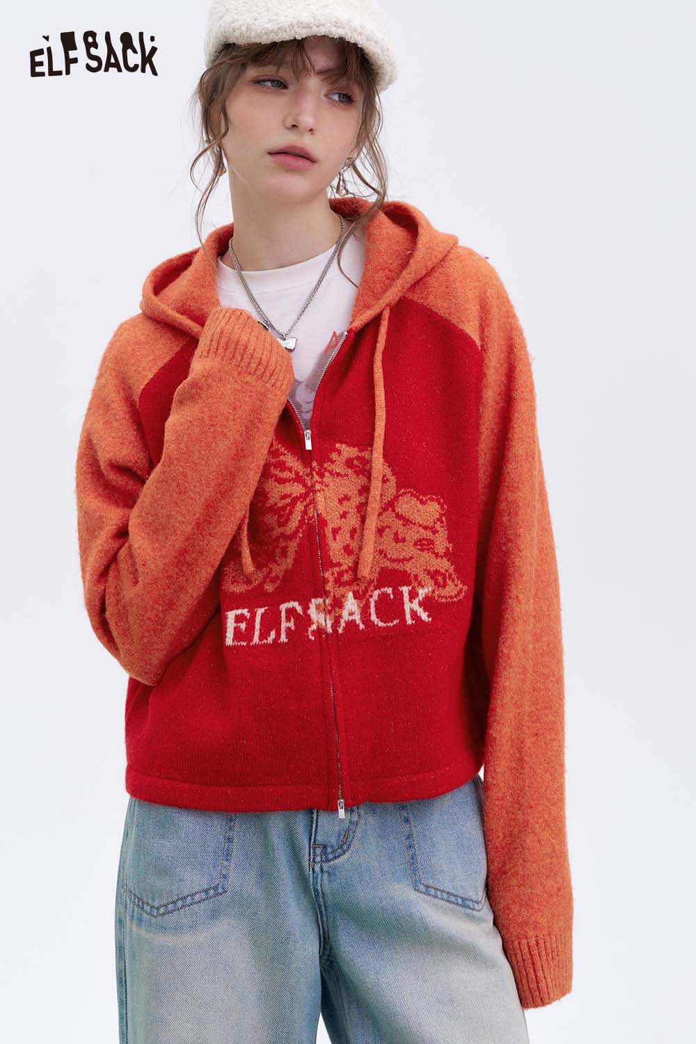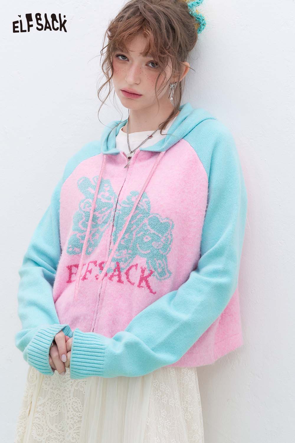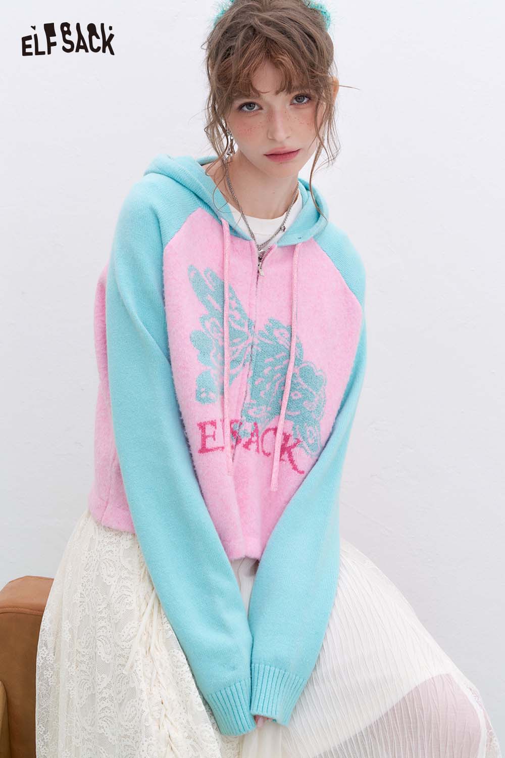 Koi Color Block Hooded Cardigan Spring Sweet Casual Knit