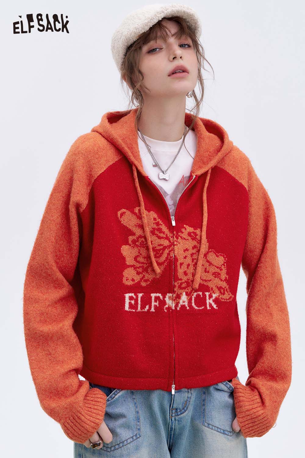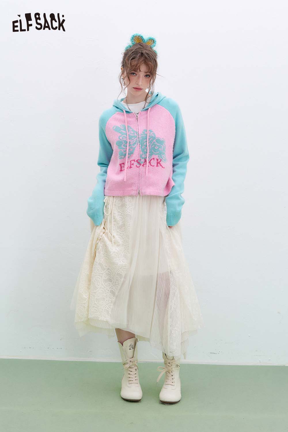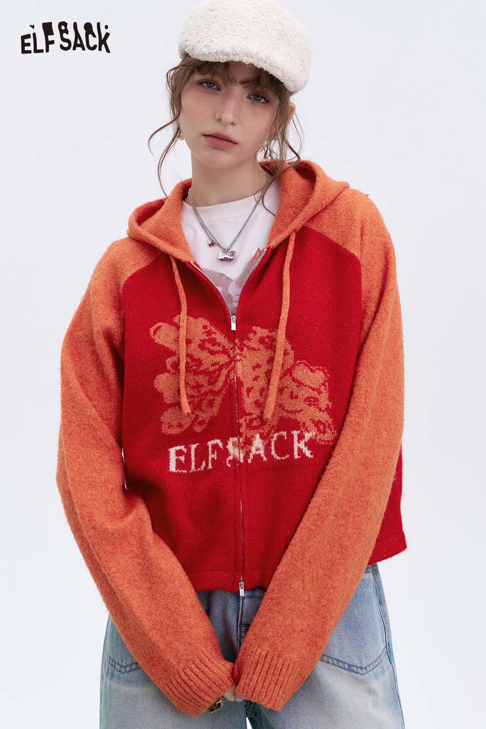 Koi Color Block Hooded Cardigan Spring Sweet Casual Knit